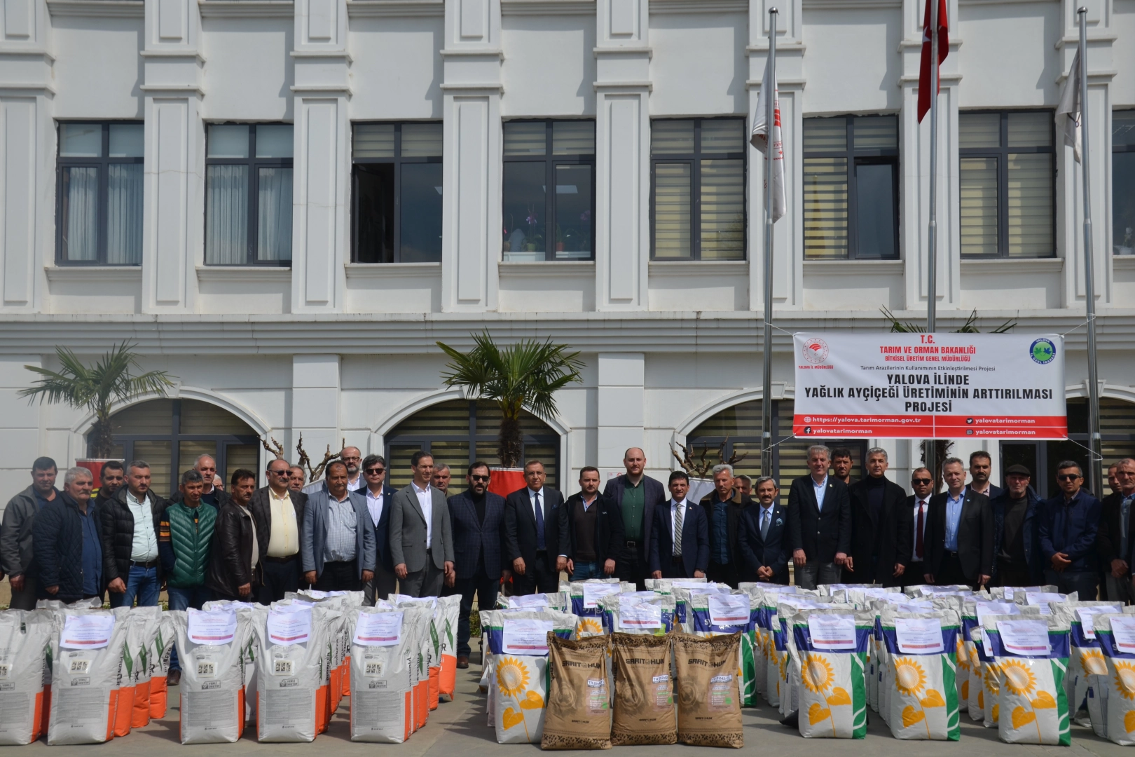 Yalova Tarım ve Orman İl Müdürlüğü, “Tarım Arazilerinin Kullanımının Etkinleştirilmesi Projesi” kapsamında yer alan Yalova İlinde Yağlık Ayçiçeği Üretiminin Arttırılması Projesi için, il binasının önünde tohum dağıtım programı düzenledi. Programa Vali Vekili M. Bahattin Atçı, Tarım ve Orman İl Müdürü Suat Parıldar, İl Genel Meclis Başkanı Hasan Soygüzel, AK Parti Milletvekili Ahmet Büyükgümüş, AK Parti Yalova Milletvekili Adayı Erhan Dede, İYİ Parti Yalova Milletvekili Adayı Ersin Akyüz, Memleket Partisi Yalova Milletvekili Adayı Ertan Şener ve çiftçiler katılım sağladı. Parıldar: “Çiftçilerimizin Gelirini Yükseltmeyi Hedefliyoruz”