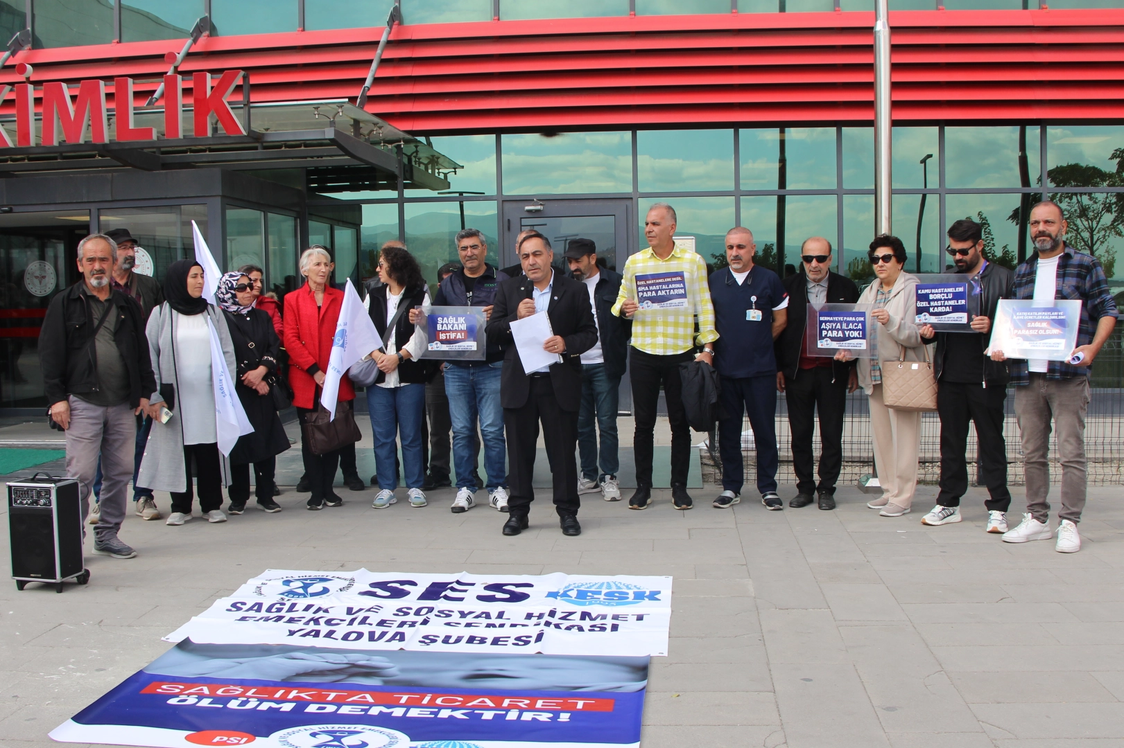 SES Yalova Şubesi Başkanı Demir Sağlık ve sendika üyeleri Yalova Eğitim ve Araştırma Hastanesi önünde bir araya gelerek sağlık sisteminde yaşanan sorunları eleştirdiler. Pankartlar açan sendika üyeleri Sağlıkta Dönüşüm Programı’ndan geri dönülmesi gerektiğini ifade ettiler. Sendika Başkanı Demir Sağlık tarafından yapılan açıklamada, “3 Kasım 2002 tarihinde AKP’nin tek başına iktidara gelmesiyle birlikte uygulamaya konulan ve eleştirilerin odağında yer alan Sağlıkta Dönüşüm Programı, özellikle toplum sağlığı açısından ciddi endişeler yaratmaya devam ediyor. Sermaye odaklı bir anlayışla şekillenen bu program, bebeklerin yaşamlarına kadar uzanan bir süreç haline gelmiş ve toplumun geniş kesimlerinde tepkilere neden olmuştur” denildi.