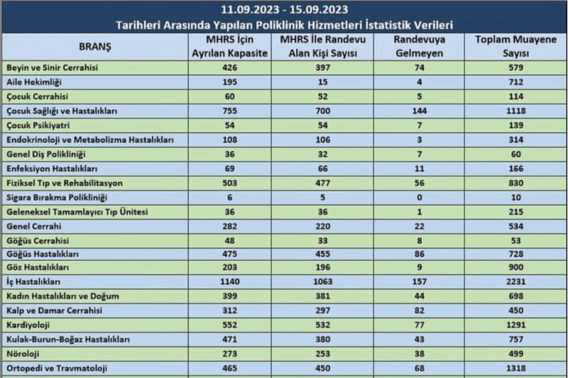 Yalova Eğitim ve Araştırma Hastanesi’nde bu hafta MHRS randevusu için ayırılan kapasite sayısı 8026 kişi olarak belirlendi, MHRS’den randevu alan kişi sayısı ise 7289 kişi oldu. Toplamda 2053 kişilik haftalık randevu sayısından 1115 kişi randevu almasına rağmen hastanede bulunmayarak randevusuna gelmedi. Yalova Eğitim ve Araştırma Hastanesi’nin açıkladığı tabloya bakıldığında bu durum karşısında gerçek hastaların sıra bulabilmesi oldukça zor bir durum haline geliyor. Bu haftaki verilere göre İç Hastalıkları Bölümü en çok talep edilirken aynı zamanda da randevusuna gelmeyen vatandaşlar arasında en yüksek veriye sahip olan branş oldu. Ardından Çocuk Sağlığı ve Hastalıkları Bölümü, randevusuna gelmeyen vatandaşlar arasında yüksek veriye sahip branş olarak takip etti.