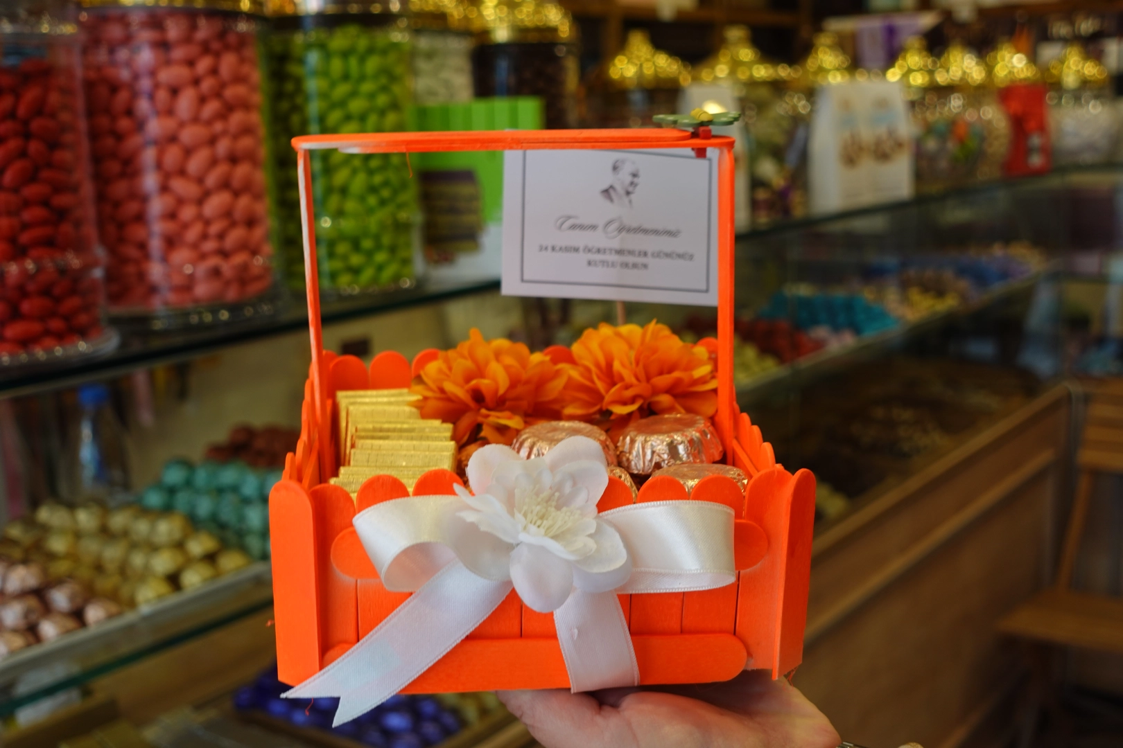 Şehrin farklı bölgelerinden gelen müşteriler, hem öğretmenlerine özel bir armağan hazırlamak hem de el yapımı çikolatanın farkını yaşamak için mağazaya yoğun ilgi gösteriyor.