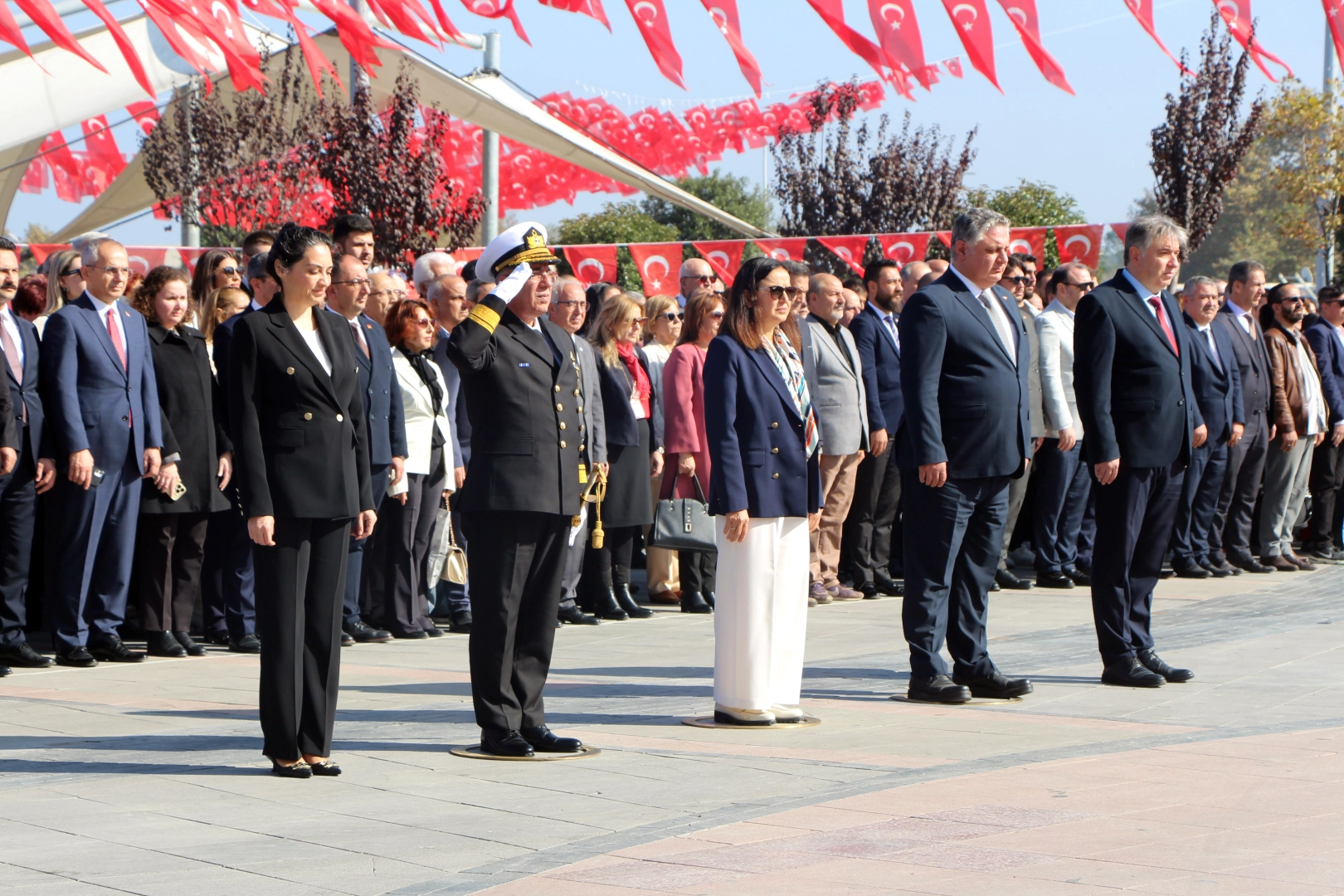 Cumhuriyet Bayramı kutlamaları Yalova 15 Temmuz Demokrasi ve Cumhuriyet Meydanında Yalova Valisi Dr. Hülya Kaya, Karamürselbey Eğitim Merkezi ve Garnizon Komutanı Tuğamiral Mehmet Tahir Göncüoğlu, Yalova Belediye Başkanı Mehmet Gürel, Yalova Cumhuriyet Başsavcısı Duygu Bayar Öksüz, Yalova Üniversitesi Rektörü Prof. Dr. Mehmet Bahçekapılı, CHP Yalova Milletvekili Tahsin Becan, kurum müdürleri, siyasi partilerin il başkanları ve STK temsilcileri ile vatandaşların katılımı ile başladı. Atatürk Anıtına Yalova Valisi Dr. Hülya Kaya, Karamürselbey Eğitim Merkezi ve Garnizon Komutanı Tuğamiral Mehmet Tahir Göncüoğlu ile Yalova Belediye Başkanı Mehmet Gürel tarafından çelenklerin sunulması sonrasında saygı duruşunda bulunularak İstiklal Marşı okundu.
