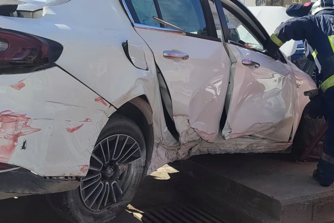 Çarpmanın etkisiyle kontrolden çıkan otomobil yolun ortasındaki bariyerlere çarptı ve kaldırıma çıktı.