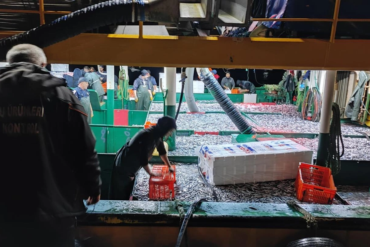 Yapılan incelemeler neticesinde toplam 113 bin 805 kilograma tekabül eden 7 bin 587 kasa hamsi balığı kayıt altına alındı.