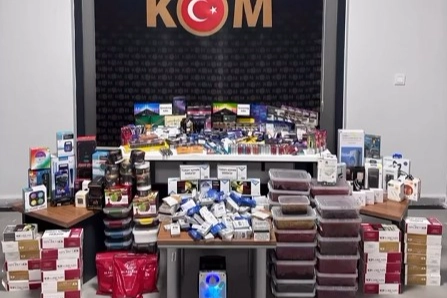 Gerçekleştirilen aramalarda 5 adet sigara basım makinesi, 2 adet kompresör, 200 kilogram kıyılmış tütün, 478 bin 200 adet boş makaron, 4 bin 400 adet dolu makaron, 9 bin adet katlanmış boş sigara paketi, 50 adet elektronik sigara likit, 61 kutu içerisinde 47 kilogram nargile tütünü, 291 paket gümrük kaçağı sigara, 5 adet elektronik sigara, 29 paket elektronik sigara, 202 adet puro, 44 paket pipo tütünü ve 88 adet farklı markalara ait kulaklık, şarj aleti, powerbank ve hoparlör ele geçirildi.