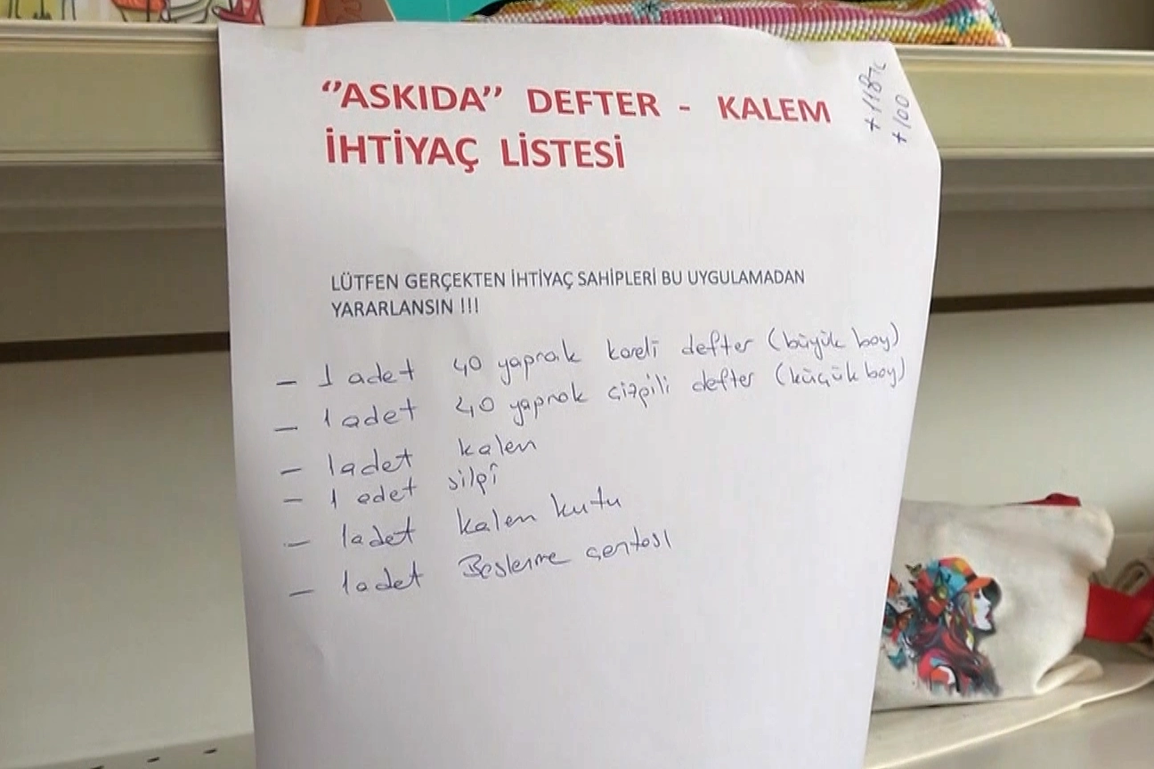 İsmetpaşa Mahallesi Girne Caddesi'nde faaliyet gösteren bir kırtasiyede ihtiyaç sahibi öğrenciler için askıda defter ve kalem uygulaması hayata geçirildi. Uygulama ile kırtasiyede vatandaşlar, ihtiyaç sahiplerine verilmesi için defter ve kalem alarak askıya bırakıyor. Askıdaki ürünler ise öğrencilere ulaştırılıyor.