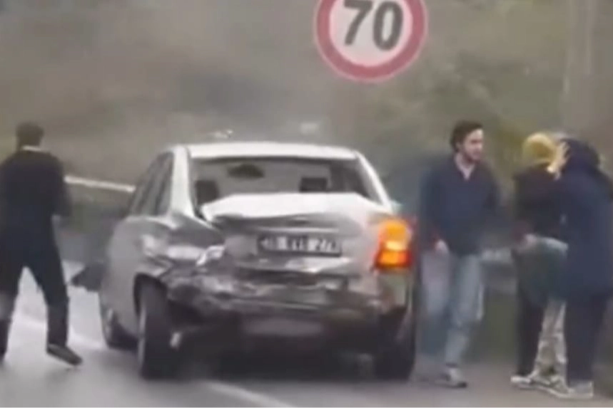 Kaza bugün öğle saatlerinde Orhangazi - Yalova yolu süpürgelik yokuşunda meydana geldi. Alınan bilgilere göre Yalova yönüne gitmekte olan bir otomobil yağışlı havada kontrolden çıkarak savruldu. Bariyerlere çarparak durabilen otomobilde maddi hasar meydana gelirken, içinde bulunan çocuklu aile araç içinden aşağı inerek büyük panik yaşadı.