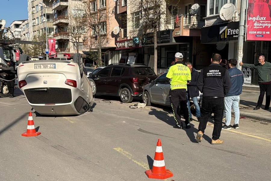 Feci kaza bugün sabah saatlerinde Yalova merkez Fatih Caddesi’nde meydana geldi. Alınan bilgiye göre Fatih Caddesi’nde seyir halindeki bir otomobil, henüz belirlenemeyen bir nedenle sürücüsünün direksiyon hakimiyetini kaybetmesi sonucu kontrolden çıkarak takla attı. Yolun ortasında ters dönerek durabilen araç, çevredekilerin büyük panik yaşamasına neden oldu. Kazanın meydana geldiği anlarda caddenin kalabalık olması faciaya davetiye çıkardı. Araç sürücüsü ters dönen otomobilden vatandaşların yardımıyla çıkarıldı.