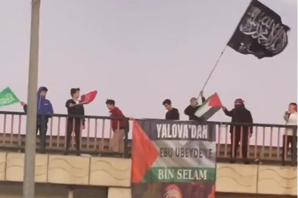 Yalova Dörtyol mevkiinde bulunan köprülü kavşakta gerçekleşen eylemde bir grup üzerinde, ‘Yalova’dan Ebu Ubeyde’ye bin selam’ yazılı pankart astı. Hamas'ın silahlı kolu olan İzzeddin el-Kassam Tugayları'nın sözcüsü Ebu Ubeyde'ye pankartla selam gönderen grup, ellerinde Filistin bayrağı sallayarak İsrail’i protesto etti.