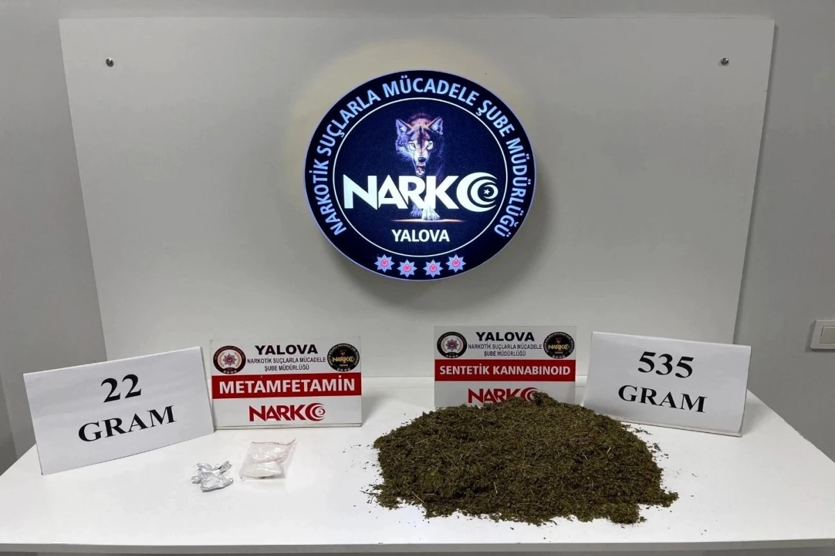 Süleymanbey Mahallesi’nde H.H.E. isimli şahıstan daralı 1,45 gr esrar maddesi, B.S.K. isimli şahıstan daralı 1,12 gr esrar maddesi ve 2 adet lyrika hap maddesi elde edildi. Bağlarbaşı Mahallesi’nde Y.K. isimli şahıstan daralı 1,27 gr., M.G. isimli şahıstan daralı 2,80 gr gelen sentetik kannabinoid maddesi elde edildi. Dere Mahallesi’nde S.A.P. isimli şahıstan daralı 0,83 gr esrar maddesi, Bayraktepe Mahallesi’nde Ö.K. isimli şahıstan daralı 3,15 gr sentetik kannabinoid maddesi elde edildi. Çınarcık ilçesi Karpuzdere Mahallesi’nde M.F. isimli şahıstan daralı 3,2 gr sentetik kannabinoid maddesi elde edildi. Altınova ilçesi Cumhuriyet Mahallesi’nde N.P. isimli şahıstan daralı 3,66 gram metamfetamin maddesi elde edildi. Çiftlikköy ilçesi Çamlık Mahallesi’nde C.E. isimli şahıstan Nervium 5Mg yazan 2 parça halinde ucu kesik tabletlerin içerisinde uyuşturucu haplar elde edildi. Çiftlikköy ilçesi Sahil Mahallesi’nde durdurulan araçta bulunan A.P. isimli şahıstan daralı 2,19 gr sentetik kannabinoid maddesi, B.B. isimli şahıstan daralı 0,56 gr metamfetamin maddesi elde edildi.”