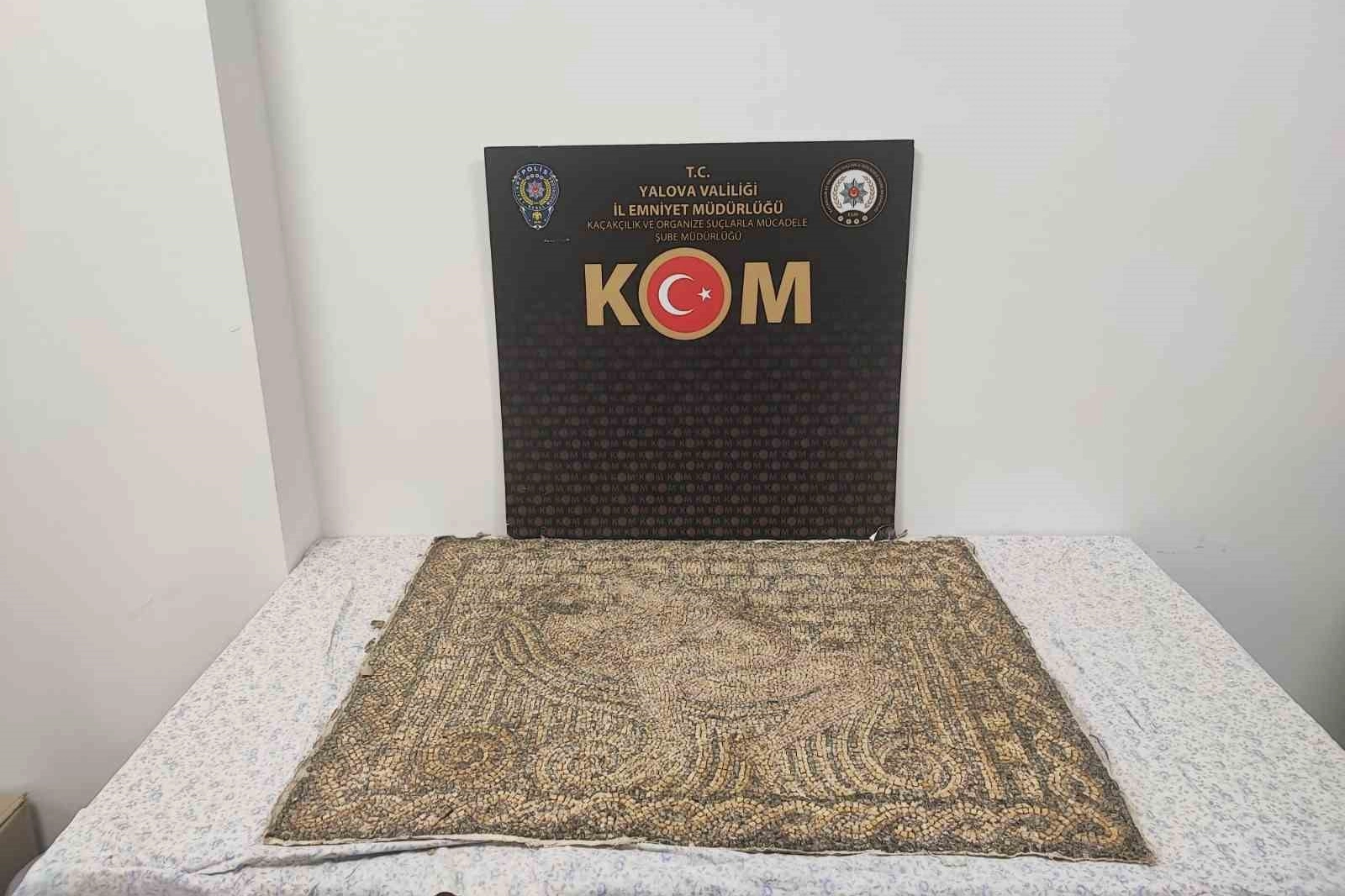 Alınan bilgiye göre, Yalova Emniyeti Kaçakçılık ve Organize Suçlarla Mücadele Şube Müdürlüğü ekipleri, Yalova’nın Armutlu ilçesinde M.M’nin ikametinde tarihi eser bulunduğunun duyumunu aldı. Gemlik Cumhuriyet Başsavcılığı koordinesinde şüpheliye ait olan 2 adreste arama gerçekleştirildi. Yapılan aramada, Suriye’den kaçak yolarla Türkiye’ye sokulduğu değerlendirilmekte olan, 88 santime 75 santim ebadında Roma dönemine ait “taş mozaik tablo” ele geçirildi.