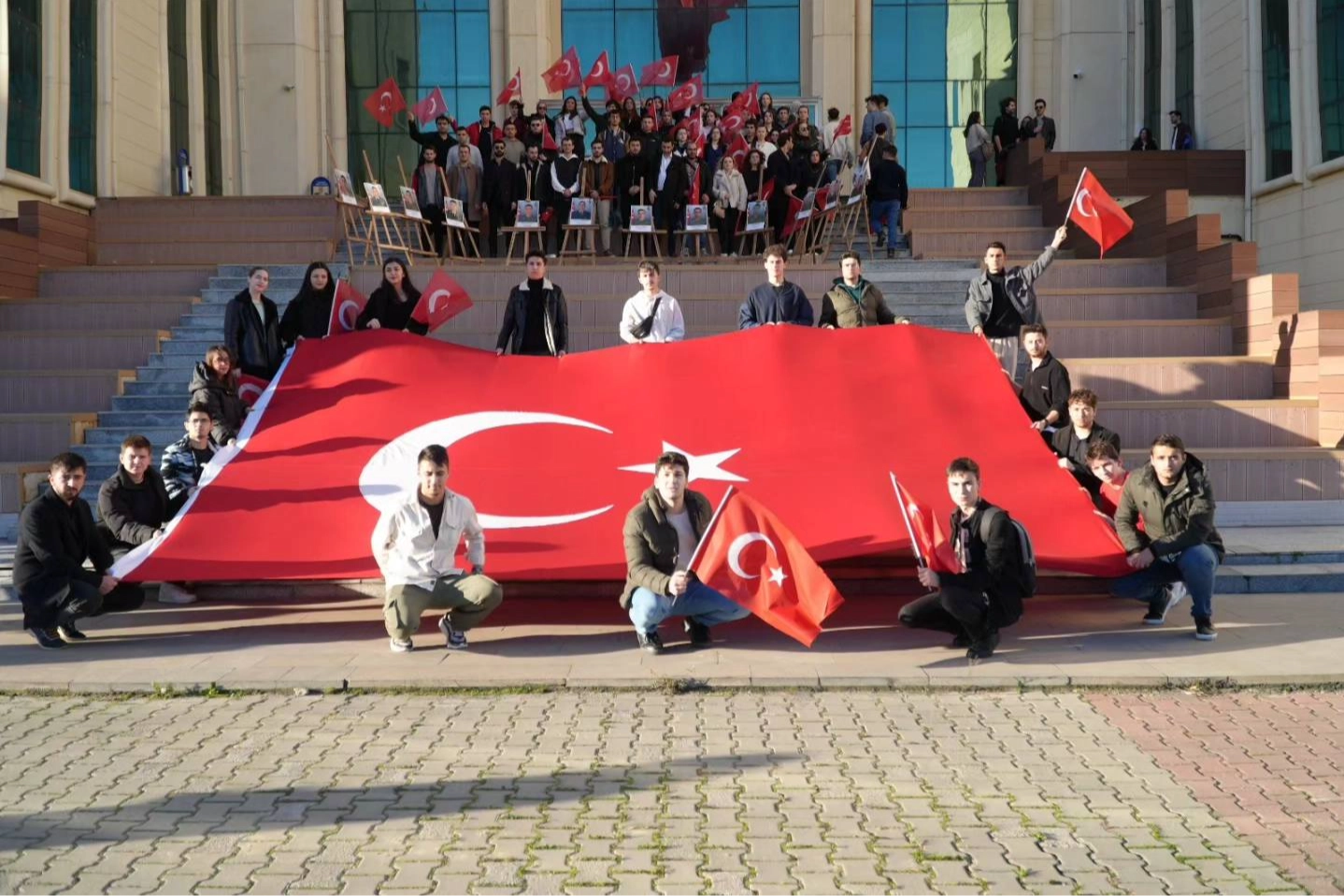 Ellerinde Türk Bayrağı ile yürüyüş gerçekleştiren kalabalık öğrenci grubu ile beraber aynı zamanda şehit edilen askerlerimizin fotoğrafları da kampüste sergilenerek anıldı.