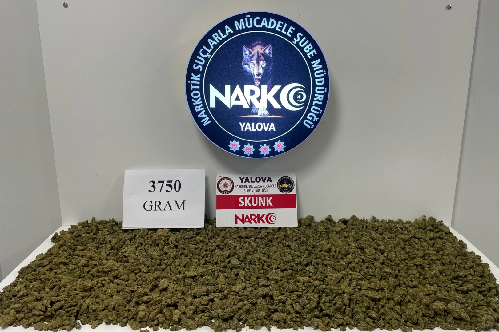 Yalova Emniyet Müdürlüğü Narkotik Suçlarla Mücadele Şube Müdürlüğünce uyuşturucu madde nakli, sevkiyatı ve ticareti yapan şahısların tespiti ve yakalanmasına yönelik yürütülen çalışmalar kapsamında 04 Temmuz 2025 tarihinde uyuşturucu madde sevkiyatı ve ticareti yaptığı değerlendirilen A.E. isimli şahsın üzerinde, eşyalarında ve kullanmakta olduğu 34*** plaka sayılı motosiklette gerçekleştirilen kontrollerde motosiklet üzerinde bulanan valiz içerisinde 2 parça halinde toplam 3 kilo 750 gram Skunk maddesi ele geçirildi.