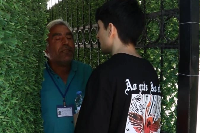 Abdulhamit Han Ortaokulu’ndaki sınava 6 dakika geç gelen bir öğrenci demir kapıdaki görevliyle içeriye girebilmek için konuştu. Genç öğrenci ne kadar yalvarsa da okula alınmadı.