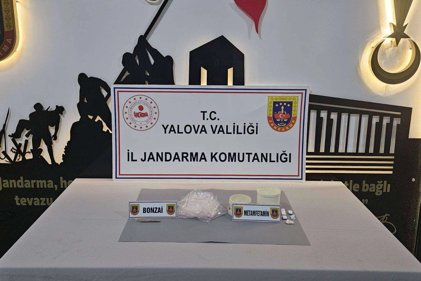 Yalova’ya deniz yolu ile gelen şahsa yönelik gerçekleştirilen operasyonda şüphelinin içinde bulunduğu araç durduruldu. Araçta bulunan S.B. adlı şahsın üzerinde yapılan aramada 1 gram Metamfetamin ele geçirildi. Ardından, S.Ö.'nün Çiftlikköy ilçesindeki ikametinde yapılan aramada 113,6 gram Metamfetamin, 2,6 gram Bonzai ve uyuşturucu satışında kullanılan çok sayıda kilitli poşet ele geçirildi.