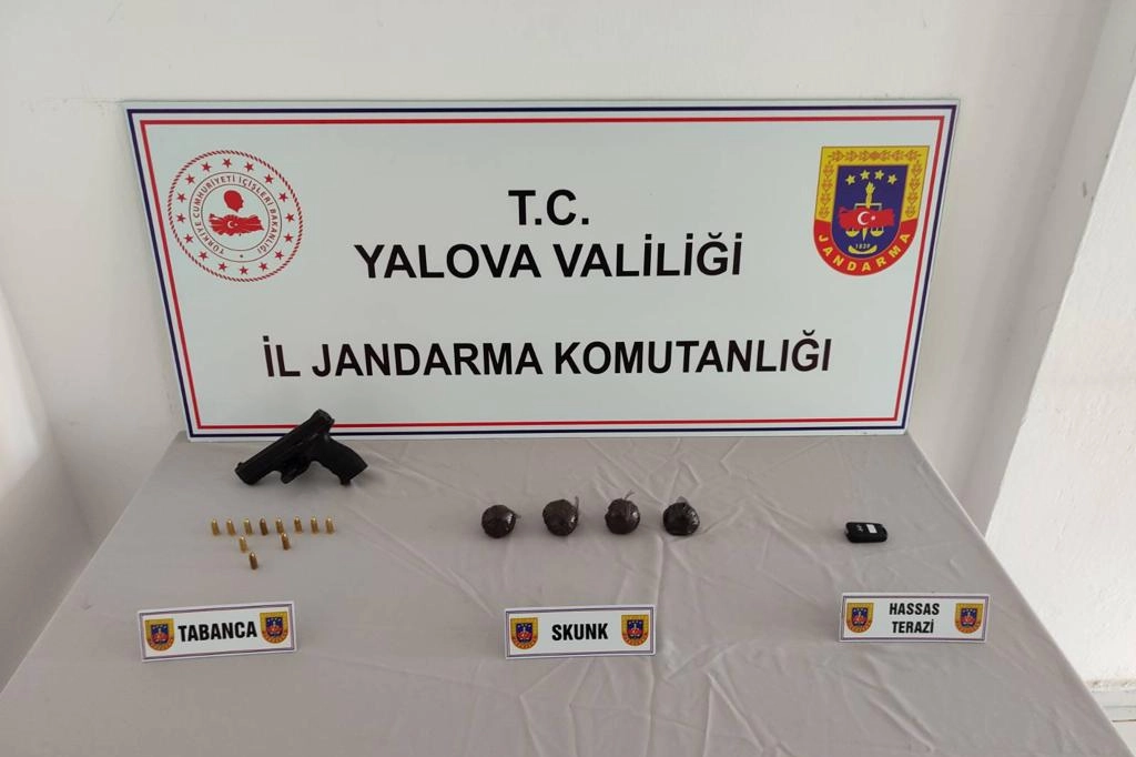 Yalova İl Jandarma Komutanlığı’ndan yapılan açıklamada, şüphelinin İstanbul’dan temin ettiği uyuşturucu maddeler ile Yalova’da ticaret yapacağı bilgisine ulaşıldığı belirtildi. Alınan bilginin değerlendirilmesi üzerine, adli makamlardan alınan izin doğrultusunda 9 Ekim 2023 tarihinde Ö.Ş. isimli şüphelinin Altınova ilçesi Tavşanlı beldesinde bulunan evinde ve Çiftlikköy ilçesi Sahil Mahallesinde bulunan iş yerinde eş zamanlı olarak yapılan aramalar sonucunda; uyuşturucu madde ve ruhsatsız silah ele geçirildiği kaydedildi. Şüphelinin üzerinden 40 gram skunk uyuşturucu maddesi, bir adet 9 mm. ruhsatsız tabanca, bir adet tabanca şarjörü, 11 adet tabanca fişeği ve bir adet hassas terazi ele geçirildi. Konuyla ilgili yapılan açıklamada ayrıca, şüphelinin uyuşturucu madde ticareti yapmak suçu kapsamında başlatılan yasal işlemlerin ardından adli makamlara sevk edildiği ve tutuklanarak cezaevine gönderildiği ifade edildi. Yalova İl Jandarma Komutanlığı’ndan yapılan açıklamada son olarak, vatandaşların huzur ve güven ortamı içerisinde yaşamasını sağlamak maksadıyla, gece gündüz demeden her türlü suç ve suçlularla mücadeleye kararlılıkla devam edileceği vurgulandı.