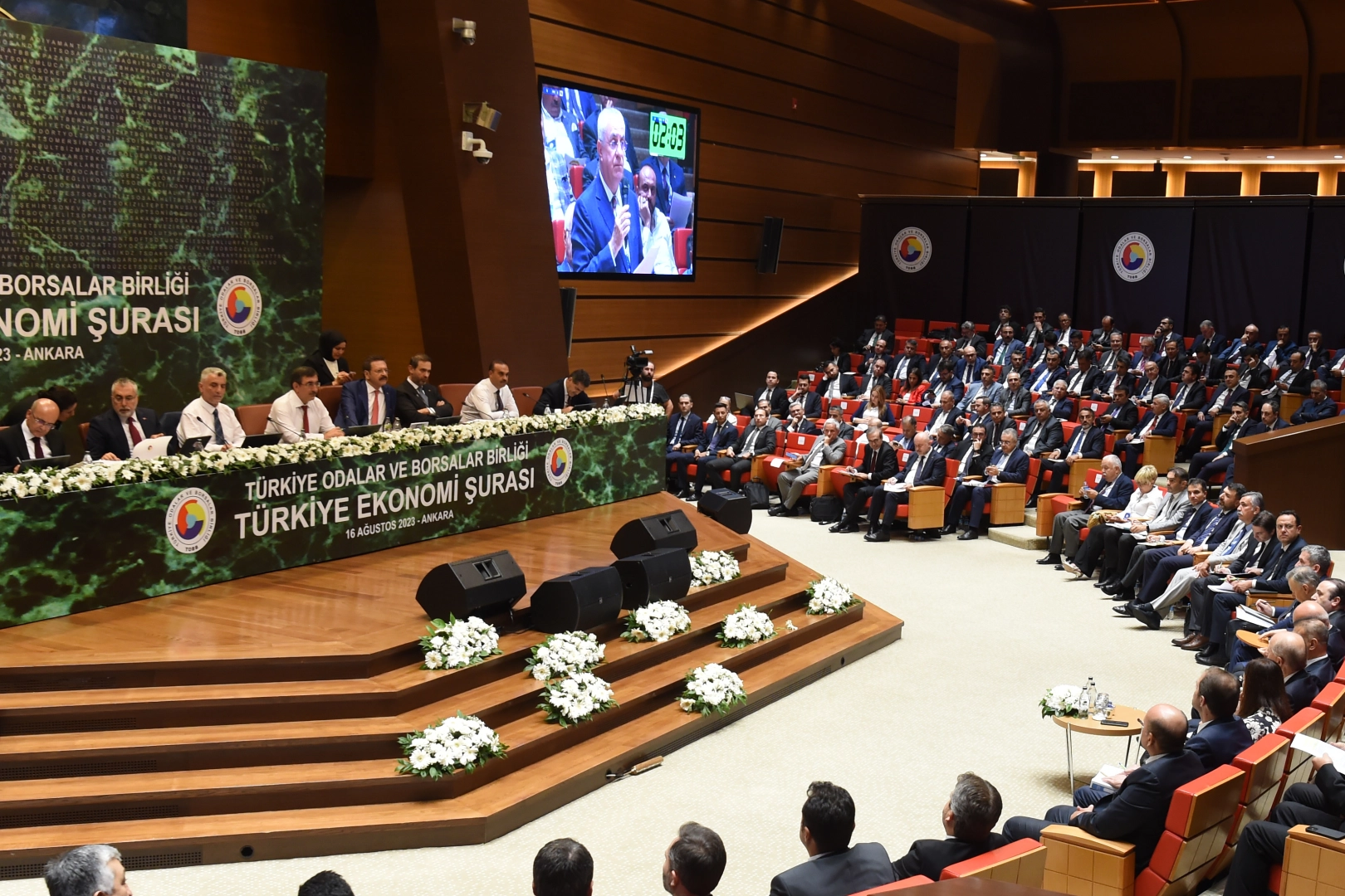TOBB Türkiye Ekonomi Şurası, TOBB Başkanı M. Rifat Hisarcıklıoğlu'nun ev sahipliğinde, Cumhurbaşkanı Yardımcısı Cevdet Yılmaz ve ilgili bakanların katılımıyla TOBB İkiz Kuleler'de gerçekleşti. Hisarcıklıoğlu'nun ev sahipliği yaptığı programda, Cumhurbaşkanı Yardımcısı Cevdet Yılmaz ve birçok oda ve borsa başkanı da hazır bulundu. Hazine ve Maliye Bakanı Mehmet Şimşek, Ticaret Bakanı Ömer Bolat, Çalışma ve Sosyal Güvenlik Bakanı Vedat Işıkhan, Tarım ve Orman Bakanı İbrahim Yumaklı, Sanayi ve Teknoloji Bakanı Mehmet Fatih Kacır, Enerji ve Tabii Kaynaklar Bakanı Alparslan Bayraktar ile Cumhurbaşkanlığı Strateji ve Bütçe Başkanı İbrahim Şenel de etkinliğe katılan isimler arasındaydı.