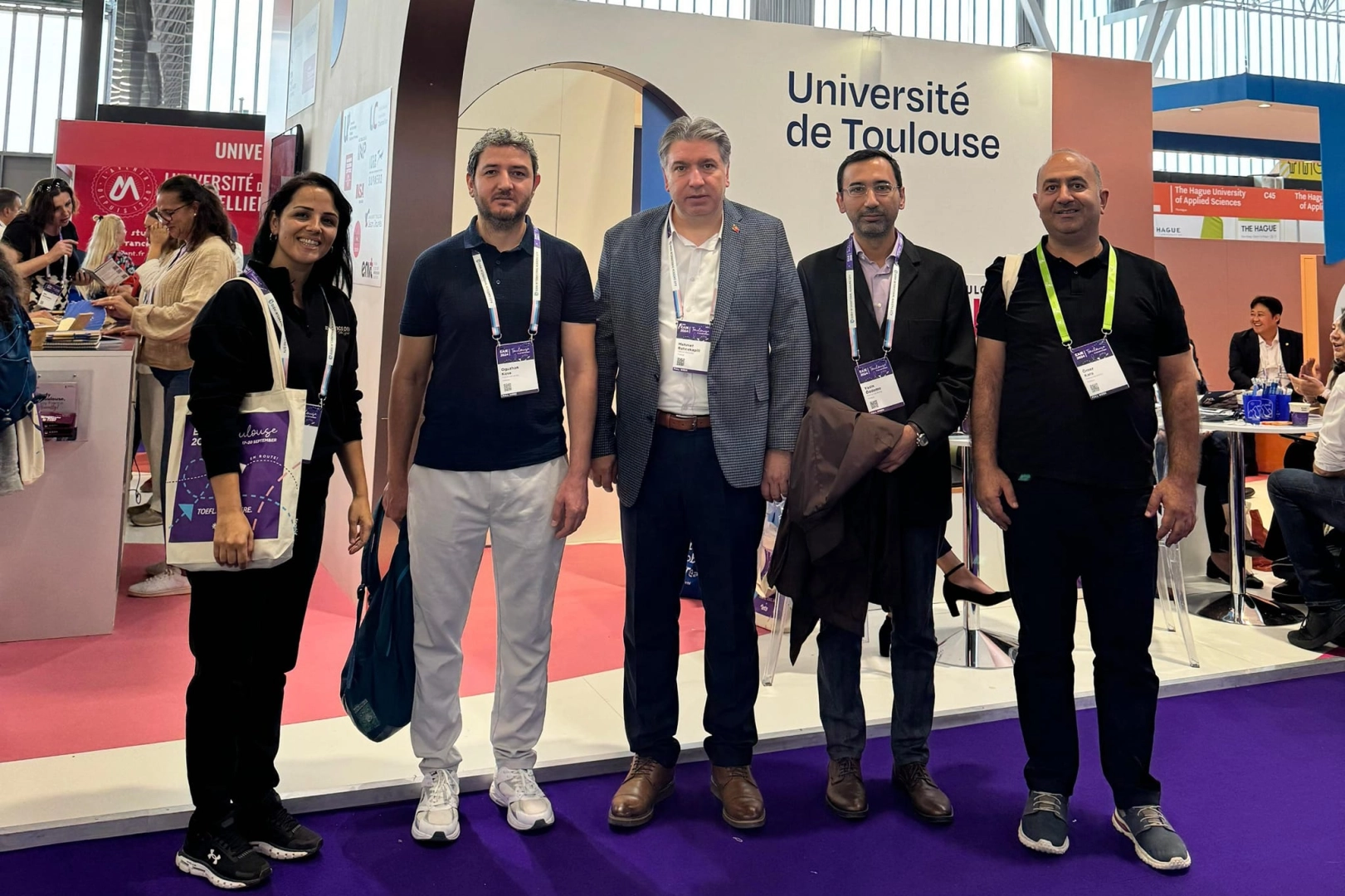 Akademik yöneticiler, sektör temsilcileri ve üst düzey eğitim bürokratları ile bir araya gelinerek yeni iş birliği olanaklarının geliştirilmesi amacıyla European Association for International Education (EAİE) tarafından 16-20 Eylül 2024 tarihlerinde Fransa’nın Toulouse şehrinde düzenlenen ‘EAIE 2024 Yükseköğretim Fuarı’na Yalova Üniversitesi’ni temsilen Rektör Prof. Dr. Mehmet Bahçekapılı, Dış İlişkiler ve Erasmus Koordinatörü Öğr. Gör. Oğuzhan Köse, Dış İlişkiler Koordinatörlüğü personeli Öğr. Gör. Dr. Nejla Türkdoğan, Dış İlişkiler Koordinatörlüğü personeli Ömer Kara ve Öğr. Gör. Dr. Yasin Özdemir fuara katıldı.