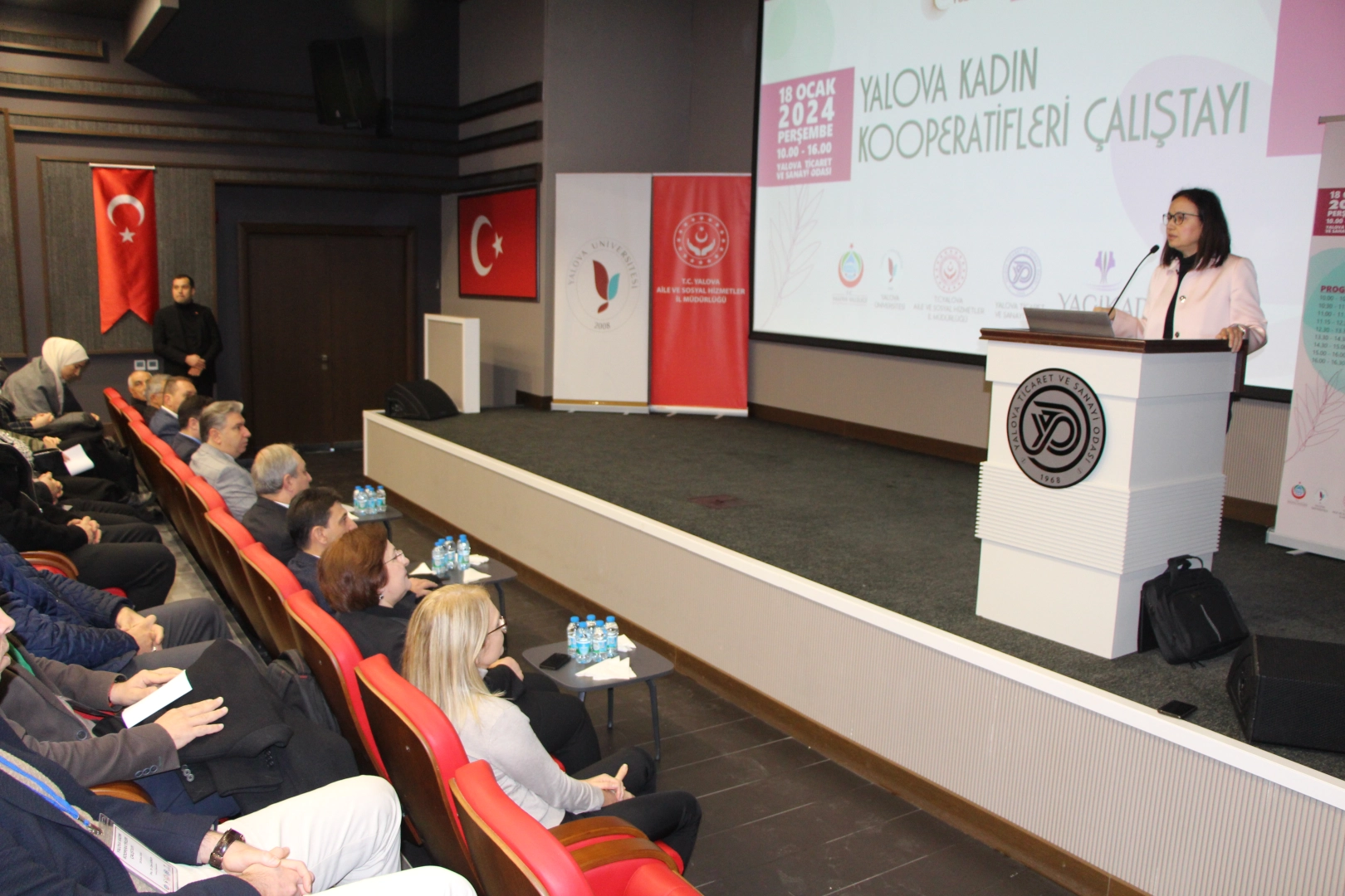 Yalova Valiliği, Yalova Üniversitesi, Yalova Aile ve Sosyal Hizmetler İl Müdürlüğü, Yalova Ticaret ve Sanayi Odası (YTSO) ve Yalova Girişimci Kadınlar Derneği’nin destekleriyle organize edilen Yalova Kadın kooperatifleri Çalıştayı, YTSO Konferans Salonu’nda gerçekleştirildi. Yalova Valisi Dr. Hülya Kaya, Yalova Üniversitesi Rektörü Prof. Dr. Mehmet Bahçekapılı, YTSO Başkanı Cemil Demiryürek, Yalova Aile ve Sosyal Hizmetler il Müdürü Arif Laçin, Yalova Tarım ve Orman İl Müdürü Suat Parıldar, Yalova Girişimci Kadınlar Derneği Başkanı Emine Yüksekol ile kadın kooperatiflerinin yetkililerinin de katıldığı toplantı saygı duruşunda bulunulması ve İstiklal Marşı’nın okunması ile başladı. Çalıştayın açılış konuşmaları Yüksekol ile başladı.