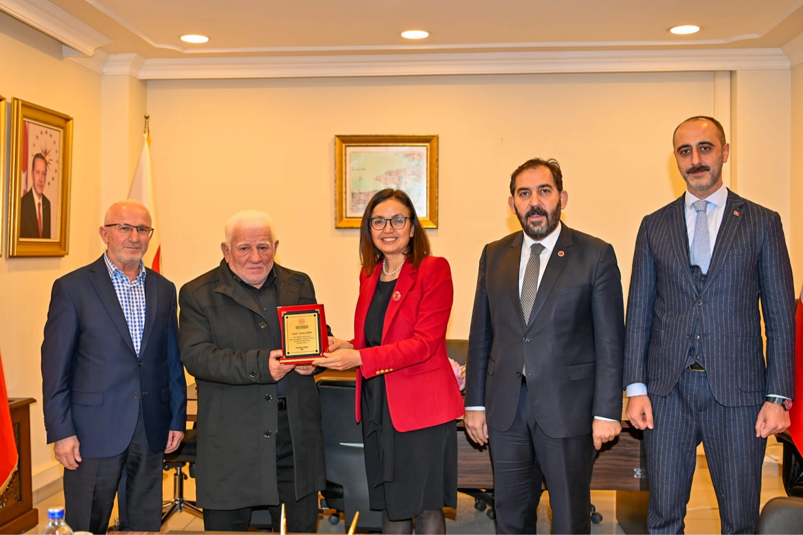 Vali Kaya makamında hayırsever Mehmet Şahin’e plaket takdim etti