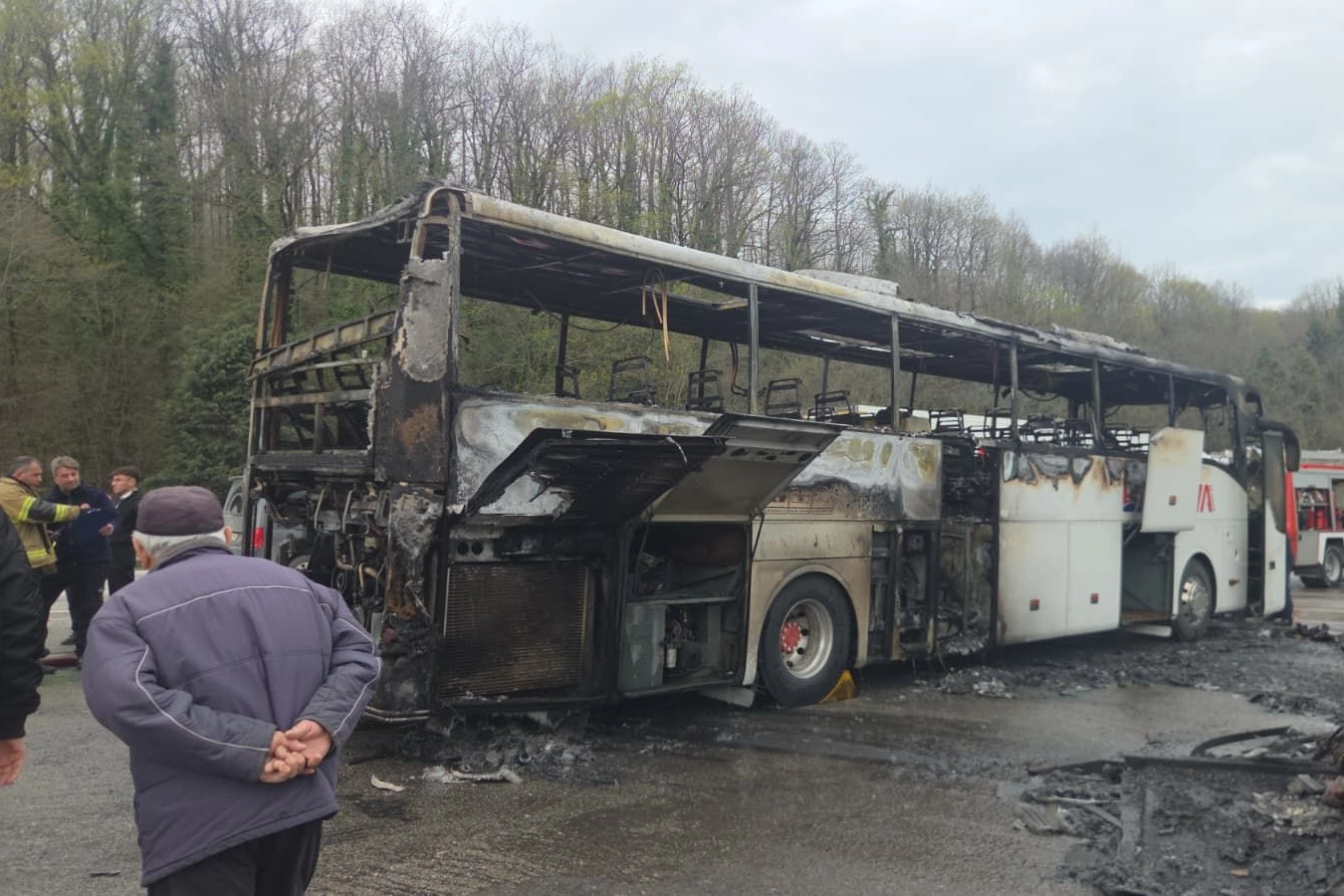 Durumu fark eden otobüs şoförü, aracı hemen emniyet şeridine çekerek yolcuları hızla tahliye etti. Yolcuların araçtan indirilmesinden kısa bir süre sonra alevler otobüsün tamamını sardı. Adeta alev topuna dönen otobüs, karayolunda korku dolu anların yaşanmasına neden oldu.