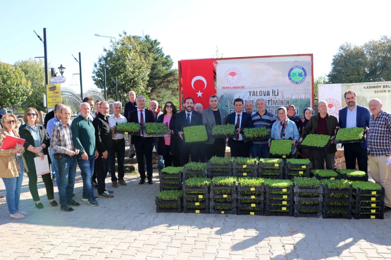 Yalova Valisi Dr. Hülya Kaya, Yalova İl Tarım ve Orman Müdürü Selçuk Yaman, Kadıköy Belediye Başkanı Yılmaz Tavşan, Yalova İl Genel Meclisi Başkanı Hasan Soygüzel, Yalova İl Özel İdaresi Genel Sekreteri Ümit Yılmaz, İl Genel Meclisi Üyesi Resul Çiftçi, teknik personeller ve çiftçilerin katıldığı fide dağıtım törenlerinin hemen ardından 15 Ekim Dünya Kadın Çiftçiler Günü dolayısıyla Vali Dr. Hülya Kaya kadın çiftçileri tarla ve seralarında ziyaret ederek tarımsal faaliyetler hakkında detaylıca bilgi alarak günlerini kutladı.