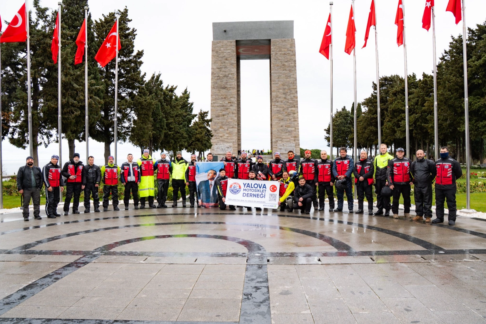 Eceabat Meydanı’ndan start alan ve tarihi yarımada boyunca devam eden dev korteje, yol kenarlarında bekleyen Çanakkaleliler de alkışlarla destek verdi. Organizasyonun finalinde Şehitler Abidesi önünde bir araya gelen Yalovalı motosikletçiler, binlerce katılımcı ile birlikte İstiklal Marşı’nı okuyarak şehitlerin ruhuna dualar gönderdi.