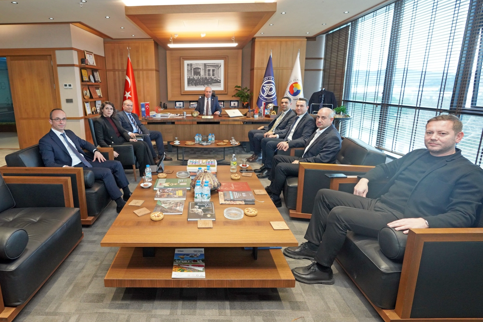 YTSO Yönetim Kurulu Başkanı Cemil Demiryürek, Yapı Kredi Bankası Bölge Müdürü Çağın Arı, Bölge Krediler Müdürü Seda Özdemir Doğan, Şube Müdürü Aziz Seyhan Mavi ve Yalova Şubesi OBİ Portföy Yönetmeni Cemal Okay’ı makamında ağırladı. Gerçekleştirilen görüşmede, Yalova iş dünyasının mevcut durumu, finansmana erişim olanakları ve bankacılık hizmetlerinin reel sektöre katkısı üzerine değerlendirmelerde bulunuldu. Özellikle KOBİ’lerin ve girişimcilerin finansal ihtiyaçlarına yönelik çözümler, yatırım süreçleri ve kredi mekanizmaları hakkında karşılıklı görüş alışverişi yapıldı.