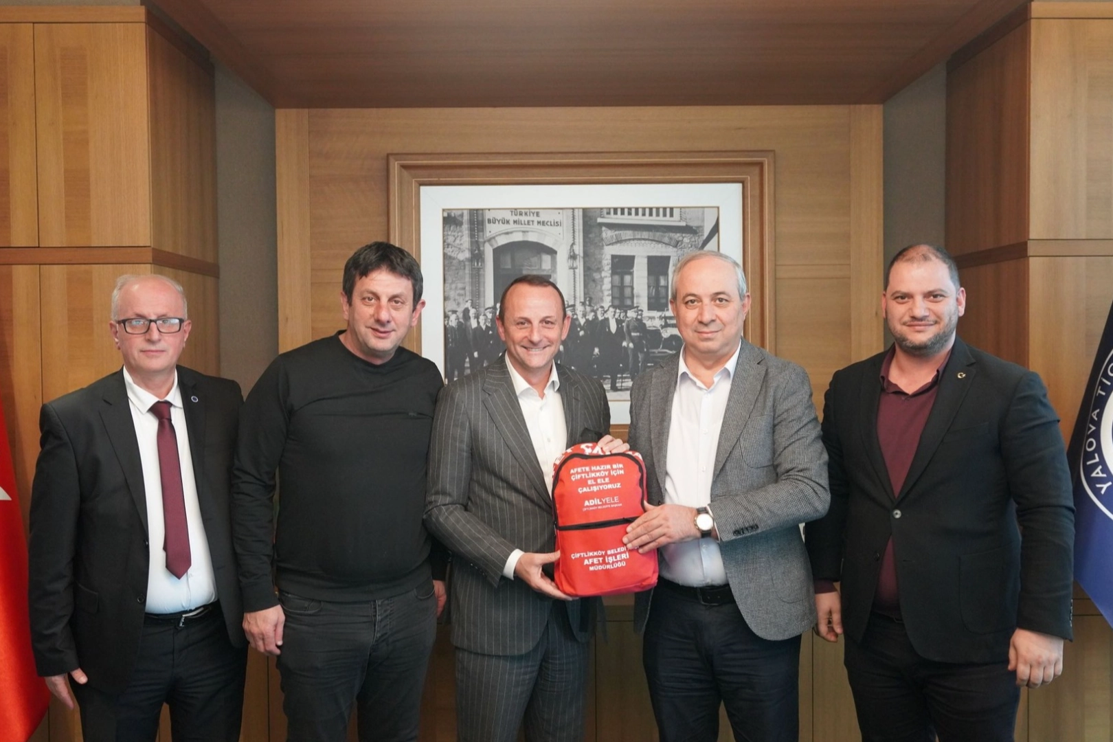 Başkan Adil Yele, ziyarette YTSO Başkanı Demiryürek’e bir afet çantası hediye ederek afetlere hazırlık ve farkındalığın artırılmasının önemine dikkat çekti. Görüşmede ayrıca bölgenin ekonomik ve ticari geleceğine yönelik fikir alışverişi yapıldı.