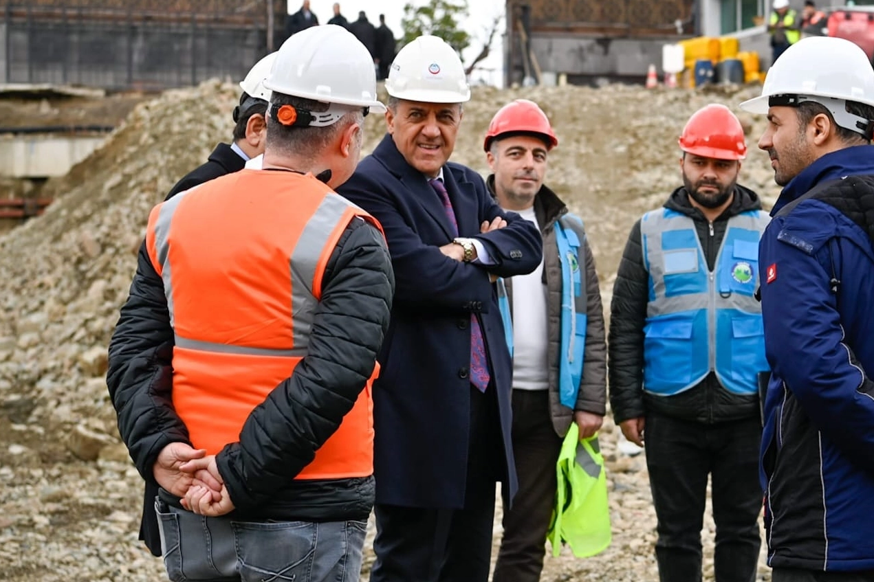 Vali Usta ve beraberindekiler inceleme sırasında çalışmaların mevcut durumu hakkında yüklenici firmadan bilgi aldı.