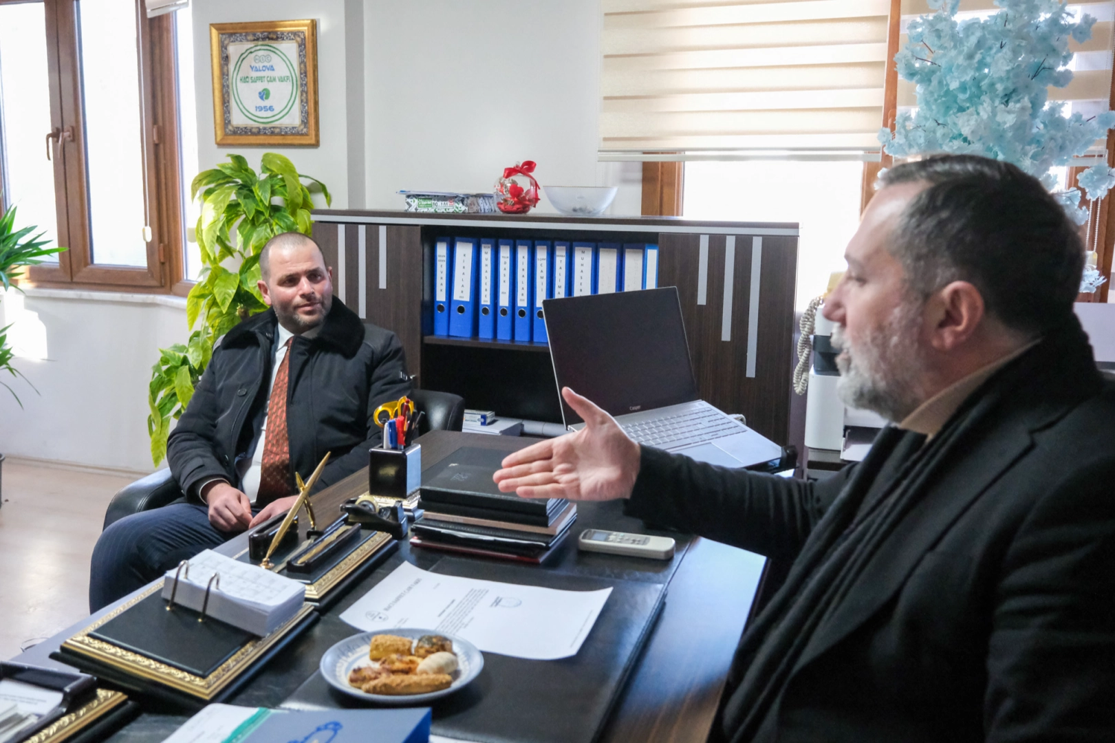 YESO Başkan Adayı Oktay İlhan, ziyaret programları kapsamında Hacı Saffet Çam Vakfı’nı ziyaret etti. Ziyaret kapsamında Vakıf Başkan Vekili Av. Tarık Burak Evin ve Vakıf Müdürü Oktay Yılmaz ile bir araya gelen İlhan, esnaf ve sanatkarların mevcut durumu ile vakfın yürüttüğü çalışmalar üzerine karşılıklı fikir alışverişinde bulundu.