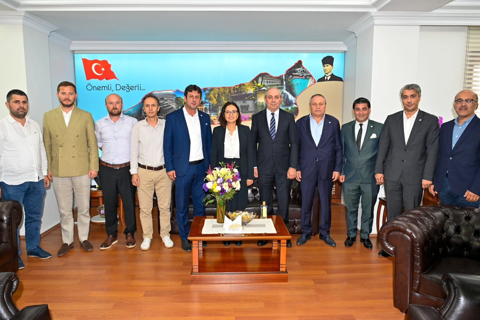 Yalova Valisi Dr. Hülya Kaya, göreve başlaması nedeni ile tebrikleri kabul etmeyi sürdürüyor. Bu anlamda YTSO Başkanı Cemil Demiryürek, YTSO Meclis Başkanı Muhammet Sarıoğlu ve yönetim kurulu üyeleri de Yalova Valisi Dr. Hülya Kaya’ya hayırlı olsun ziyareti gerçekleştirdiler. Vali Kaya’ya görevinde başarı dileklerini ileten YTSO Başkanı Demiryürek, Yalova ekonomisi, ildeki sanayi ve ticaret çalışmaları ile YTSO’nun çalışmaları hakkında bilgiler verdi.