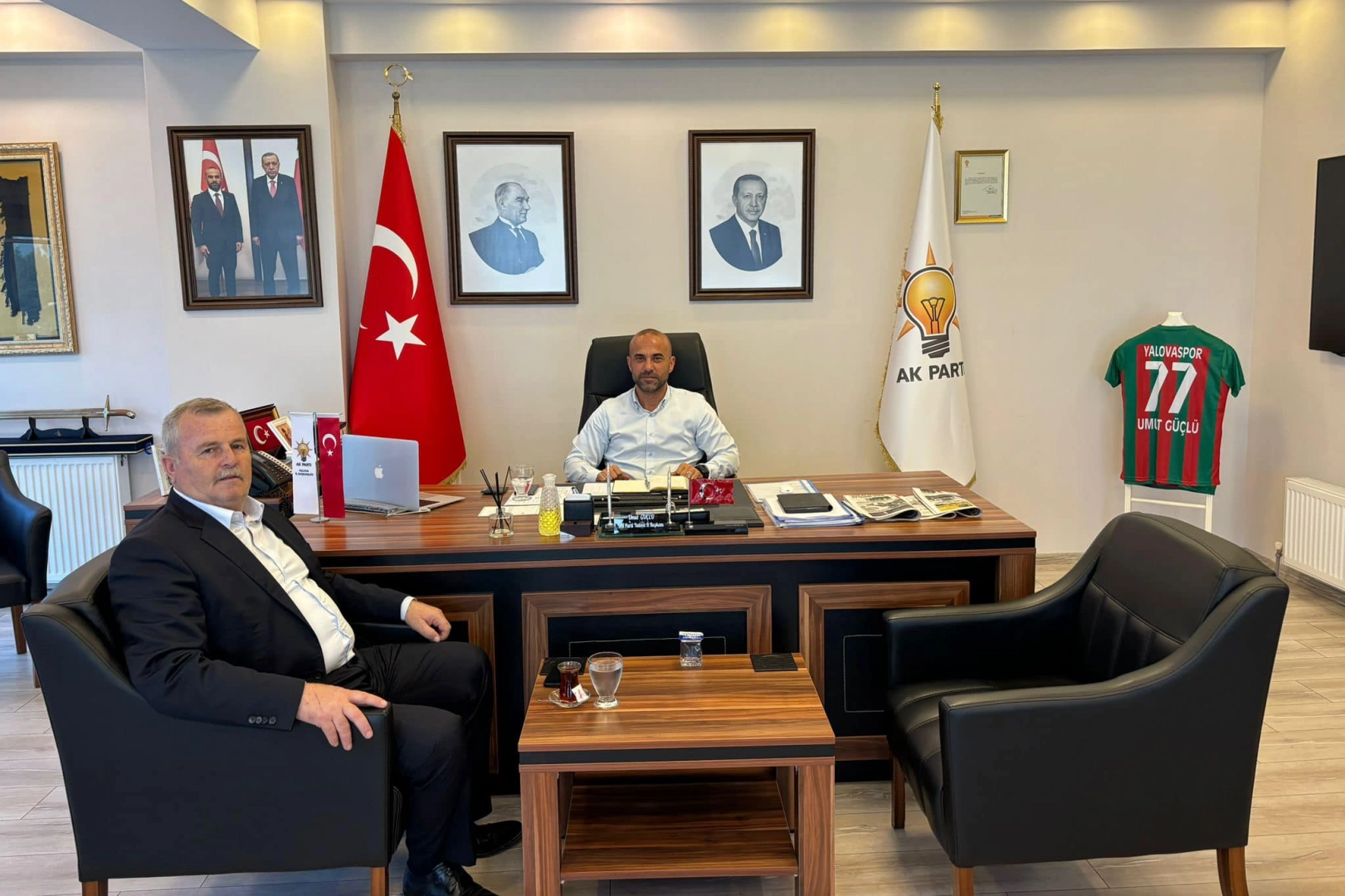 AK Parti Yalova İl Başkanlığı kendisine gelen ziyaretçileri kabul etmeye devam ediyor. Bu kapsamda AK Parti Yalova İl Başkanı Umut Güçlü gelen ziyaretçilerini makamında ağırlamayı tüm hızıyla sürdürüyor. Armutlu Belediye Başkanı Cengiz Arslan, AK Parti Yalova İl Başkanı Umut Güçlü’yü ziyaret etti. Yapılan ziyarette Armutlu Belediye Başkanı Cengiz Arslan, İl Başkanı Güçlü’ye Armutlu ilçesi hakkında çeşitli bilgiler verdi. Arslan, belediye olarak yaptıkları çalışmalardan Güçlü’ye bahsetti. Görüşmede karşılıklı olarak fikir alışverişinde bulunan başkanlar verimli bir toplantı gerçekleştirdi. Arslan, misafirperverliklerinden dolayı Güçlü’ye teşekkürlerini iletti.