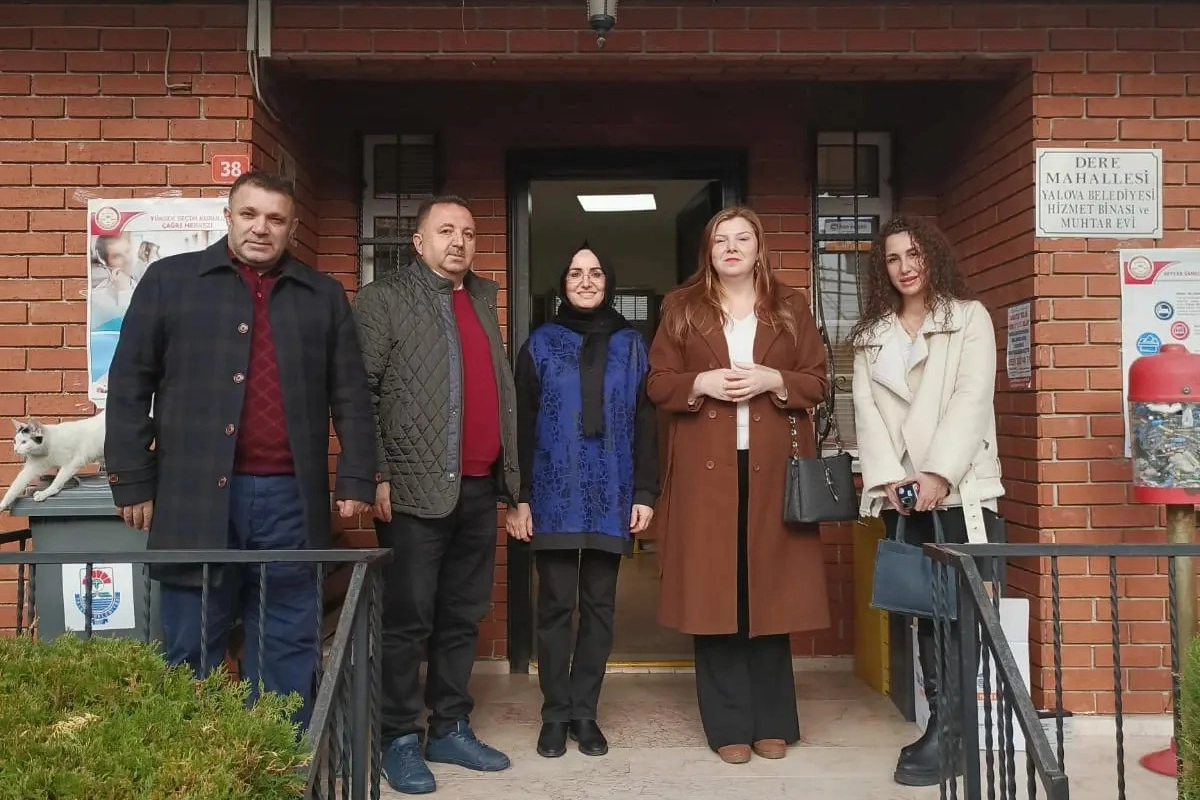 Demokrasi ve Atılım Partisi (DEVA) Yalova İl Teşkilatı ve Deva Partisi’nden Yalova Belediye Başkanı adayı olan Aslı Üresin, Dere Mahallesi Muhtarı Faize Kahraman, Bağlarbaşı Mahallesi Muhtarı Şükrü Bakkal, Bayraktepe Mahallesi Muhtarı Ahmet Esmer' i ziyaret etti.