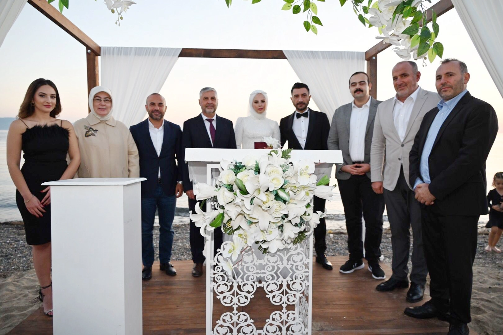 Seha & Burak çiftinin nikah merasimine katılan parti teşkilatı çiçeği burnunda olan çifti tebrik ederek mutluluklar diledi.