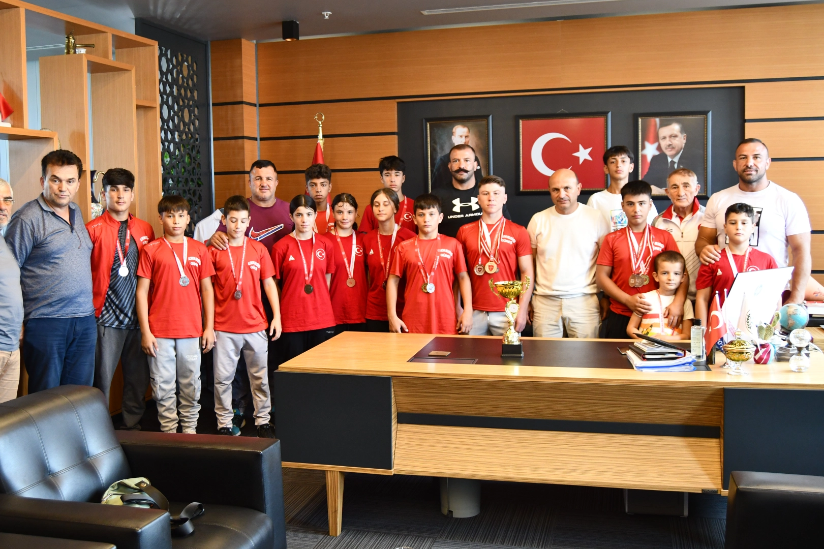 8’inci Balkan Oyunlarında takım halinde şampiyon olan Altınova Belediyespor Güreş Takımı sporcuları Altınova Belediye Başkanı Dr. Metin Oral’ı ziyaret ettiler. Sporcuları kutlayan Başkan Oral, sporculara önümüzdeki müsabakalarda başarılar diledi.