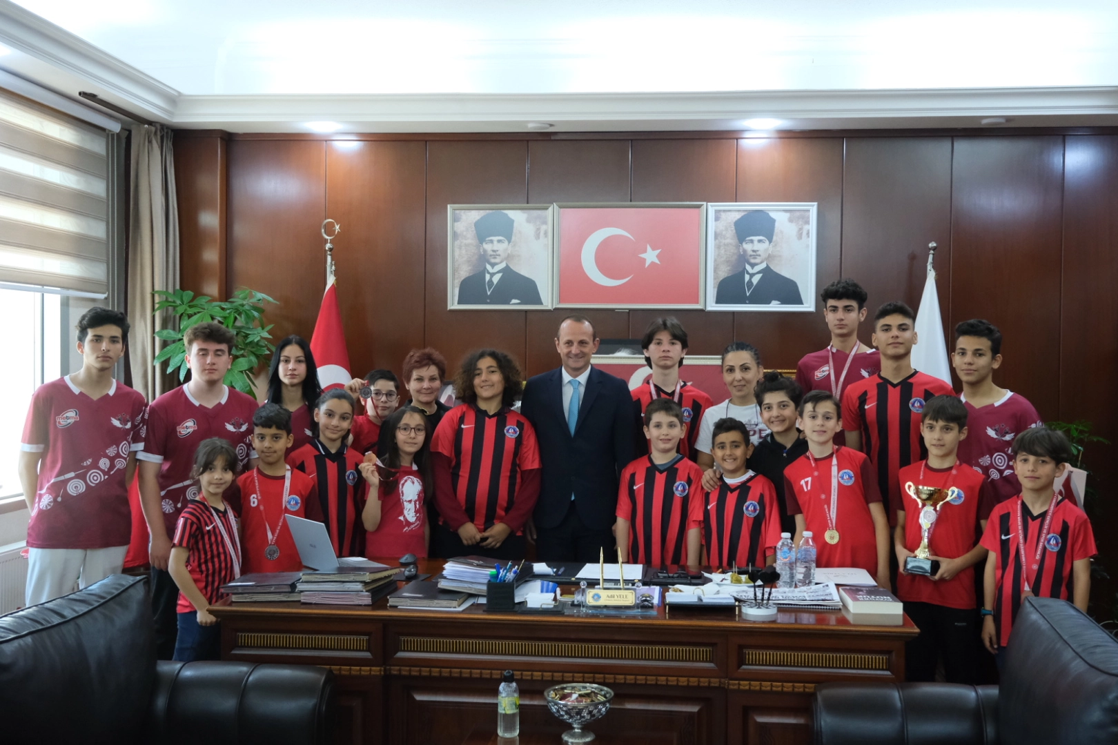 Turnuvanın Ankara’da gerçekleştirilen ikinci ayağında genç erkekler kategorisinde Ahmet Tepe Eymen’le, beşinci ayakta Antalya’da yıldızlar kategorisinde Tuna Dural’la Türkiye üçüncülüğü elde eden Çiftlikköy Belediyespor Dart Takımı, madalya sevinçlerini Çiftlikköy Belediye Başkanı Adil Yele ile paylaştı.