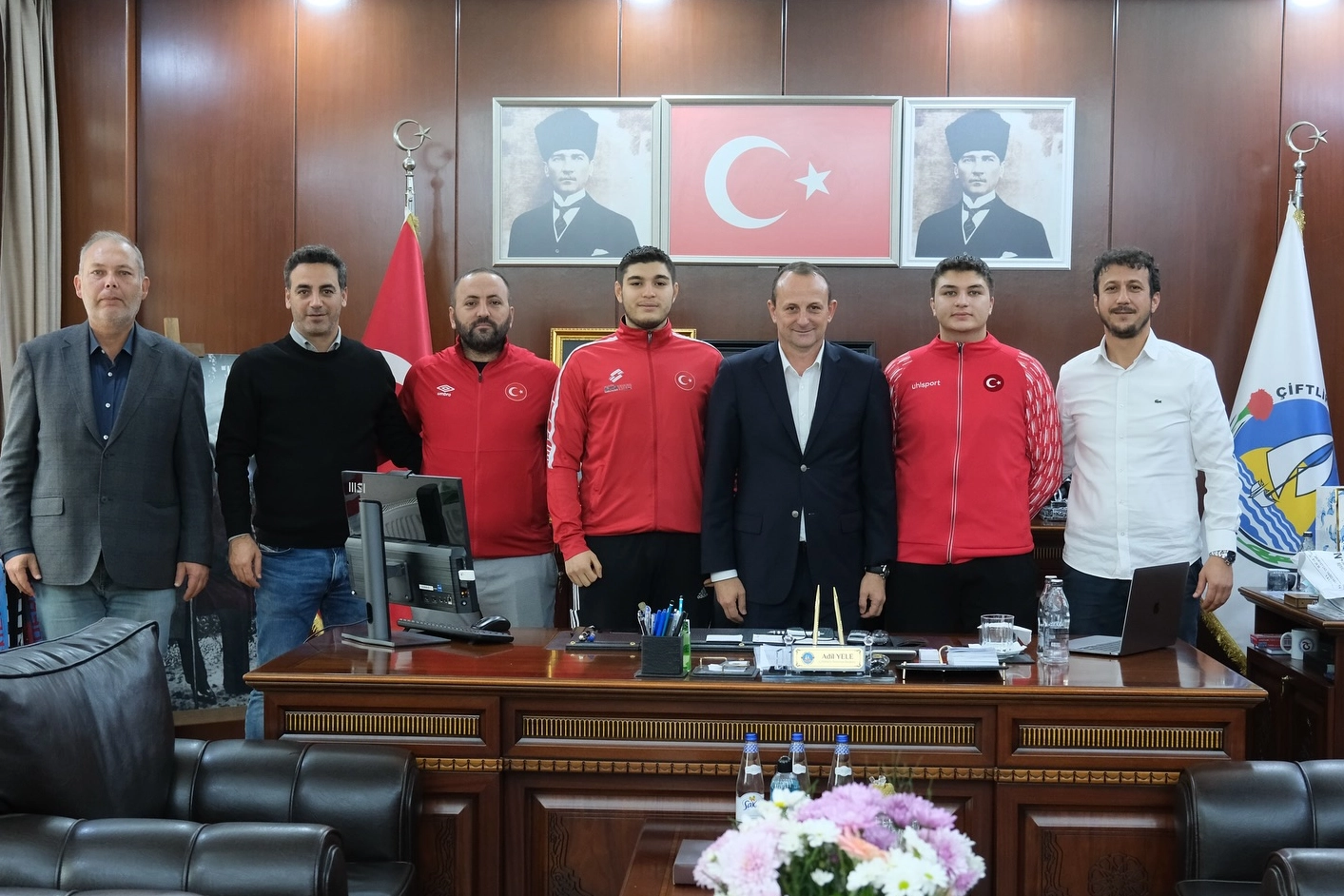 Yele’yi ziyaret ettilerÇiftlikköy Belediyespor Başkanı Suat Kaan Aydın, Belediyespor Yönetimi, turnuvada milli takım antrenörü olarak görev yapacak olan Çiftlikköy Belediyespor Karate Takımı Antrenörü Halil İbrahim Yüksektepe ve Çiftlikköy Belediyespor Karate Takımı’nın milli sporcuları turnuva öncesinde Çiftlikköy Belediye Başkanı Adil Yele’yi ziyaret ederek moral depoladı. Başkan Yele’ye bilgi veren Karate Takımı Antrenörü Yüksektepe, 34. Uluslararası Boğaziçi Karate Turnuvası’nın 13-15 Aralık 2024 tarihlerinde İstanbul Ataköy Atletizm Spor Salonunda düzenleneceğini dile getirerek, “Sporcularımız ülkemizin en köklü uluslararası karate organizasyonlarından birine katılarak madalya mücadelesi verecek. Çok sayıda sporcunun ter dökeceği turnuva, minik-yıldız, ümit-genç, büyükler, veteranlar ve işitme engelliler kategorilerinde gerçekleşecek” diye bilgi verdi. Çiftlikköy Belediyespor’un karate branşında birbirinden değerli sporcular yetiştiren bir ekole sahip olduğunu söyleyen Başkan Yele de, sporculara ve teknik ekibe başarılar dileklerini iletti.