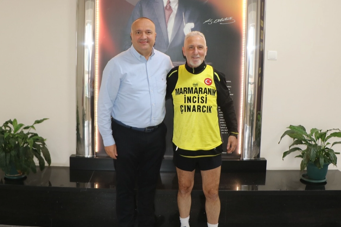 25 yıllık koşu kariyerine sahip olan ünlü koşucu Afif Akar, Türkiye İş Bankası 46. İstanbul Maratonu öncesinde Çınarcık Belediye Başkanı Avni Kurt ile bir araya geldi. Ziyarette Afif Akar, maratonda Çınarcık Belediyesi’ni temsilen 15 km’lik mesafeyi koşacağı için heyecanlı ve gurur duyduğunu ifade etti. Başkan Kurt, Akar’a başarılar dileyerek, Çınarcık’ın spor alanındaki temsilinin önemine değindi. Akar, maratondaki hedefleri ve antrenman süreci hakkında bilgiler verirken, Başkan Kurt da spora ve sporculara verdikleri destekle ilgili açıklamalarda bulundu. Afif Akar, İstanbul Maratonu’nda elde edeceği başarıyla Çınarcık’ı en iyi şekilde temsil etmeyi hedeflediğini ifade ederken, Başkan Kurt da Akar’a nazik ziyareti adına teşekkür ederek, yarışta başarılar diledi. Ziyaret hatıra fotoğrafı çekilmesi ile birlikte son buldu.