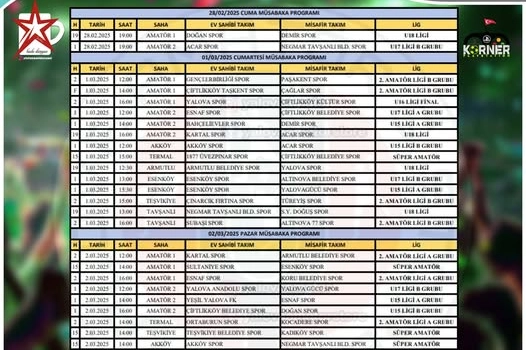 İşte 1 ve 2 Mart 2025 tarihi maç programı:1 Mart 2025 Cumartesi