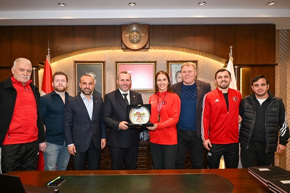 Romanya’nın başkenti Bükreş’te düzenlenen Avrupa Güreş Şampiyonası'nda 68 kiloda altın madalya kazanan milli sporcu Buse Tosun Çavuşoğlu, Belediye Başkanı Mustafa Tutuk ile bir araya geldi. Başarılı sporcuyu tebrik eden Tutuk, “Senin yerin bizde çok ayrı öncelikle seni tebrik ediyorum. Sen başta şehrimiz olmak üzere ülkemizi başarılı bir şekilde temsil ederek Avrupa Şampiyonu oldun ve bizleri gururlandırdın. Adını altın harflerle Yalovalıların gönlüne yazdın.