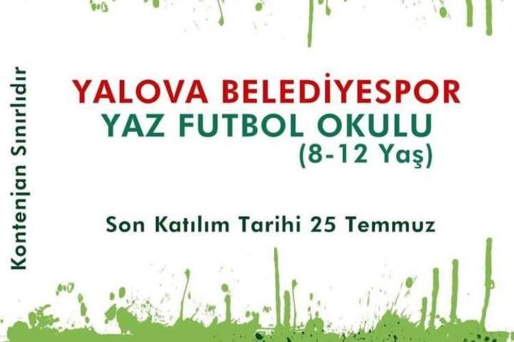 Yalova Belediyespor, yaz döneminde çocuklara futbol eğitimi sunmak üzere "Yaz Futbol Okulu" düzenliyor. 8 - 12 yaş grubundaki çocuklar için hazırlanan futbol okuluna kayıtlar devam ediyor.