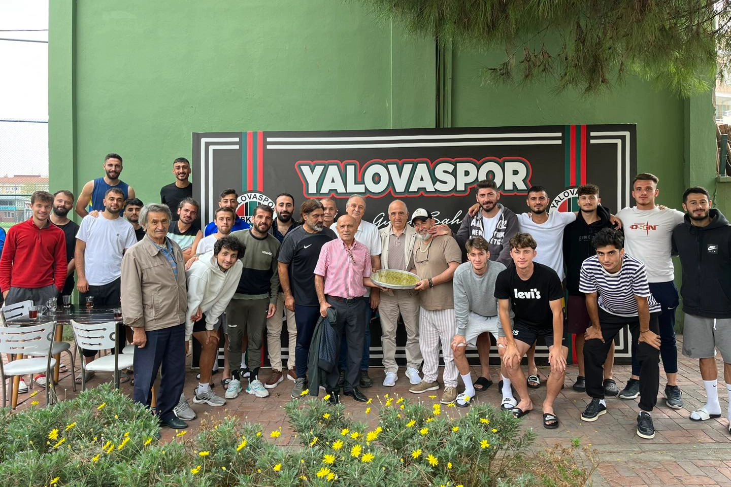 Çalışmalarına büyük bir hızla devam eden Yalovaspor’a anlamlı bir ziyaret gerçekleşti. Yalova Masterler Derneği Başkanı Fikret Karaalioğlu, Teknik Direktör Faruk Yiğit ve Futbol Takımını ziyaret edip baklava ikramında bulundu.