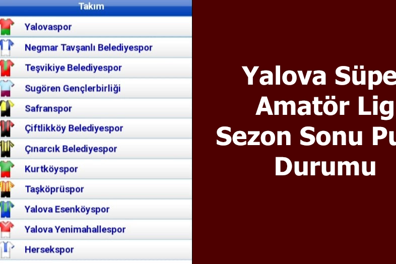 Yalova Süper Amatör Lig sona erdi. 1.Sırada 22 maçta 22 galibiyet alarak toplamış olduğu 66 puanla şampiyonluğa ulaşarak Bölgesel Amatör Lig’e yükselmeye hak kazanan Yalovaspor yer alırken, 2.sırada ise 22’de 18 yaparak 2’de beraberlikle, topladığı 56 puanla Negmar Tavşanlı Belediyespor yer aldı. 3.Sıra ise 22’de 9 galibiyet ve 4 beraberlikle 31 puana ulaşarak Teşvikiye Belediyespor yer aldı. Süper Amatör Lig sezon sonu puan durumu, tam liste halinde aşağıda belirtildiği şekildedir.