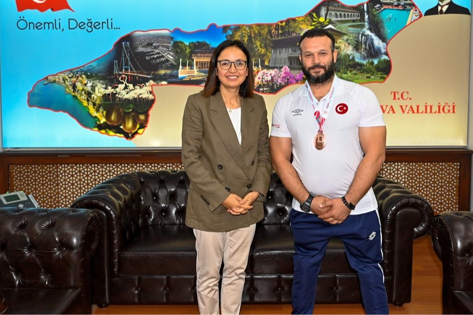 Dubai 2023 Para Halter Dünya Şampiyonası Dünya 3.sü Uğur Yumuk, Vali Dr. Hülya Kaya'yı ziyaret etti. Yalova Valisi Dr. Hülya Kaya, dünya çapında başarılı olan sporcu Uğur Yumuk’u makamında ağırladı. Bir araya gelinen görüşmede başta spor olmak üzere çeşitli konulardan konuşuldu. Verimli geçen görüşmenin sonrasında Yumuk, Vali Kaya ile birlikte fotoğraf çekildi. Kaya, nazik ziyaretlerinden dolayı Yumuk’a teşekkür etti.