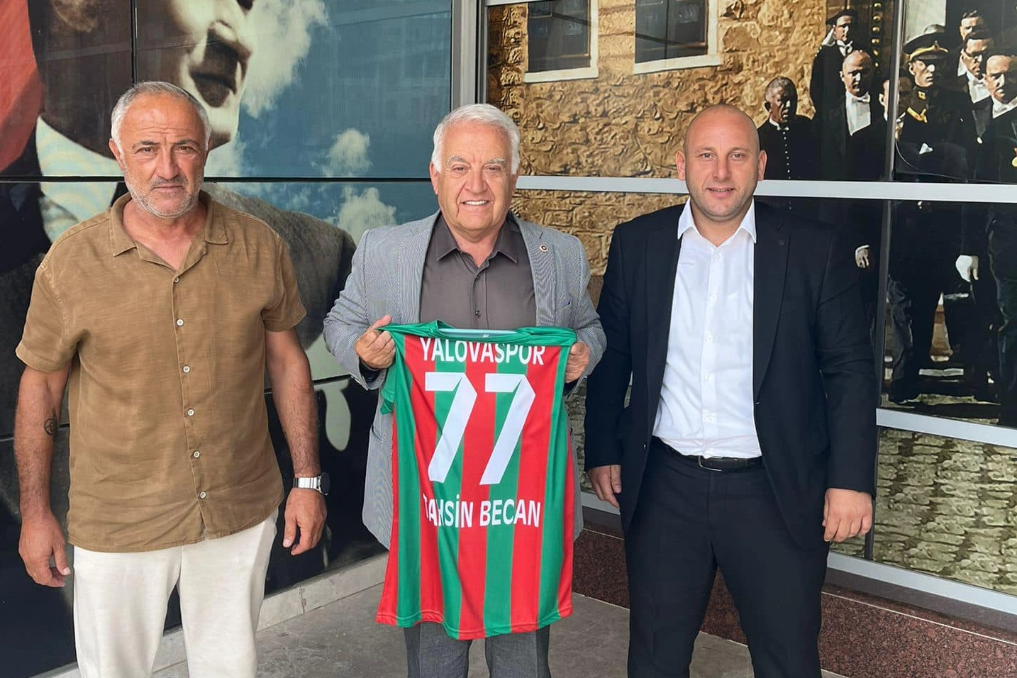 25 Haziran Salı günü yapılan kongrede 3 yıllığına Yalovaspor’un yeni başkanı seçilen Ali Yavru, Yönetim Kurulu Üyesi Teoman Parıltan ile birlikte Türkiye Büyük Millet Meclisinde yaptığı konuşmalarla Yalova’nın sorunlarını Türkiye’ye duyuran Yalova Milletvekili Tahsin Becan’ı ziyaret etti. Yalovaspor U13 Futbol Takımının Yalova Gücü Spor ile oynadığı maçta galip gelerek, şampiyonluk kupasını kaldırmasıyla ilk şampiyonluğunu yaşayan Başkan Ali Yavru, Milletvekili Tahsin Becan’a Yalovaspor forması hediye etti. Kulüp yönetimi olarak Yalovaspor’un her takımının şampiyon olabilmesi için hayata geçirmeyi planladıkları çalışmaları anlatan Ali Yavru, kentin sorunlarına eğilen Tahsin Becan’a teşekkür etti. Ziyaretleri için Başkan Ali Yavru ve Teoman Parıltan’a teşekkür eden Tahsin Becan, BAL Liginde mücadele edecek olan Yalosapor’a yeni sezonda başarılar diledi.