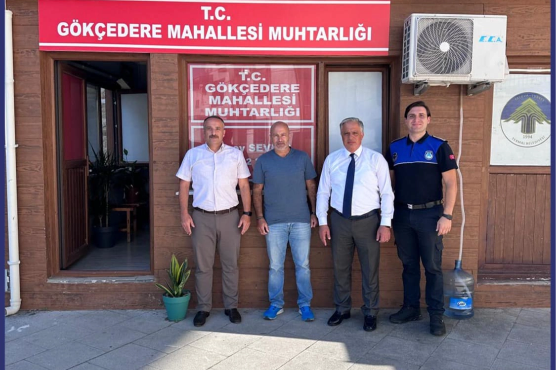Termal Belediye Başkanı H. Sinan Acar, Gökçedere Mahallesi Muhtarı Ersoy Sevinç’i Termal’e yeni kazandırılmış olan Gökçedere Mahallesi Muhtarlık Ofisi’nde ziyaret etti. Başkan Acar, Sevinç’i yeni muhtarlık ofisinde ziyaret ederek mahalledeki çalışmalar hakkında görüş alışverişinde bulundu. Görüşmenin devam etmesiyle birlikte mahalle sakinlerinin karşılaştığı sorunlar ve talepler üzerine istişarelerde bulunan Başkan Acar, Termal Belediyesi’nin ve belediye çalışmalarının ayrıntılarını paylaştı. Ziyaretten duyduğu memnuniyeti dile getiren Gökçedere Mahallesi Muhtarı Ersoy Sevinç, Başkan Acar’a teşekkür etti.