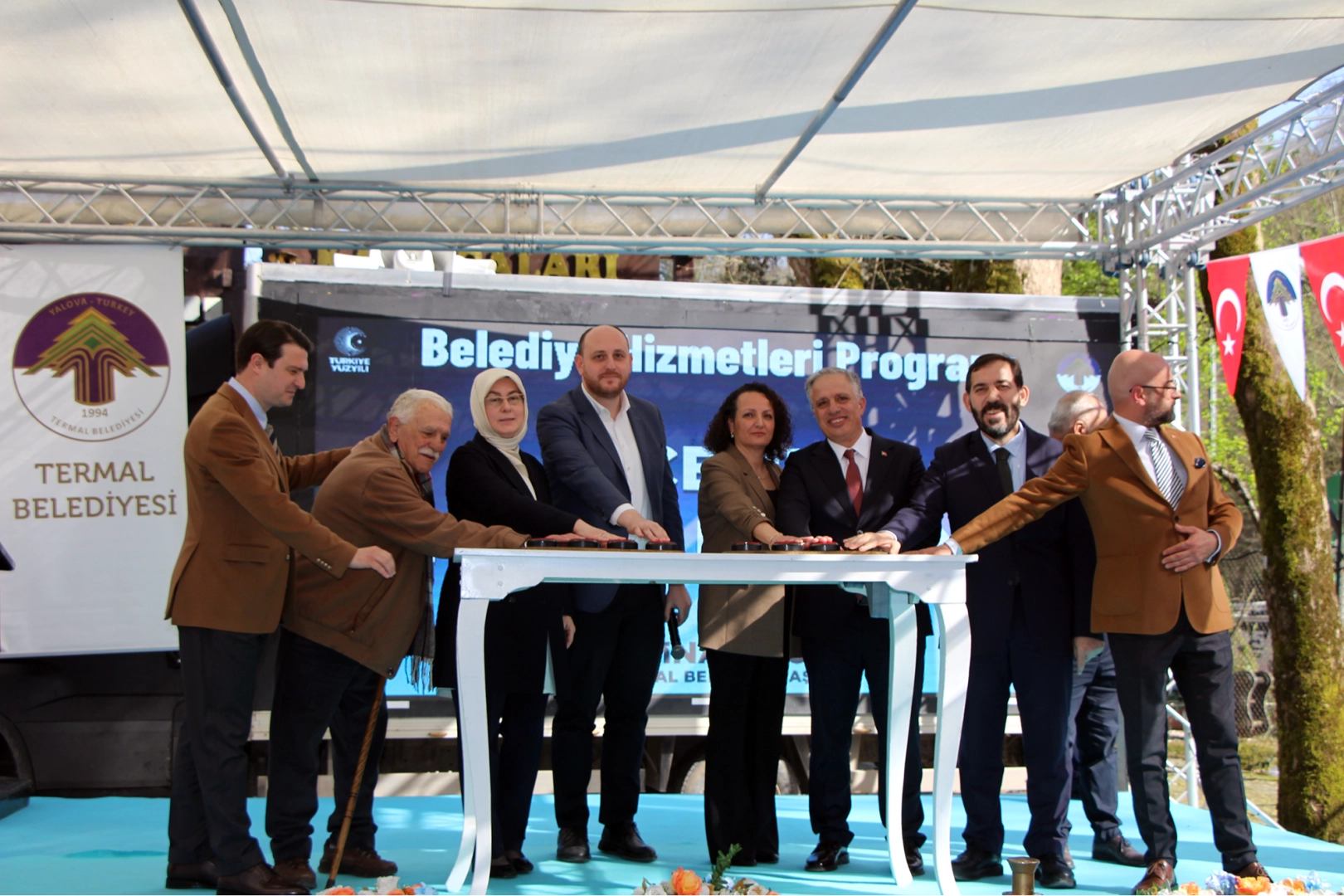 Konuşmaların ardından Termal Belediye Binasının temeline ilk harcı koyacak olan butona Termal Belediye Başkanı H. Sinan Acar, AK Parti Yalova Milletvekilleri Ahmet Büyükgümüş ve Meliha Akyol, İl Genel Meclisi Başkanı Hasan Soygüzel ile beraberindekiler birlikte bastılar.