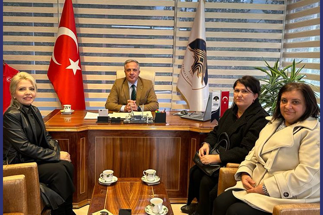 Yalova Aile ve Sosyal Hizmetler İl Müdürlüğü, Şiddet Önleme ve İzleme Merkezi (ŞÖNİM) sorumluları, Termal Belediye Başkanı H. Sinan Acar’a makamında ziyarette bulundular. Bir araya gelinen görüşmede Başkan Acar kadına şiddetin engellemesine yönelik faaliyetlerle ilgili ŞÖNİM sorumlusu Cennet Ertürk’ten bilgi aldı. Konuyla ve çalışmalarla ilgili meselelerden konuşan Acar ve Ertürk karşılıklı olarak fikirlerini paylaştı. Acar, kendilerine nazik ziyaretlerinden dolayı misafirlerine teşekkür etti.