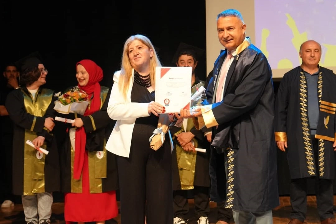 Ardından Bölüm Başkanı Prof. Dr. Oktay Özgül tarafından mezun öğrencilere anı belgeleri verildi.