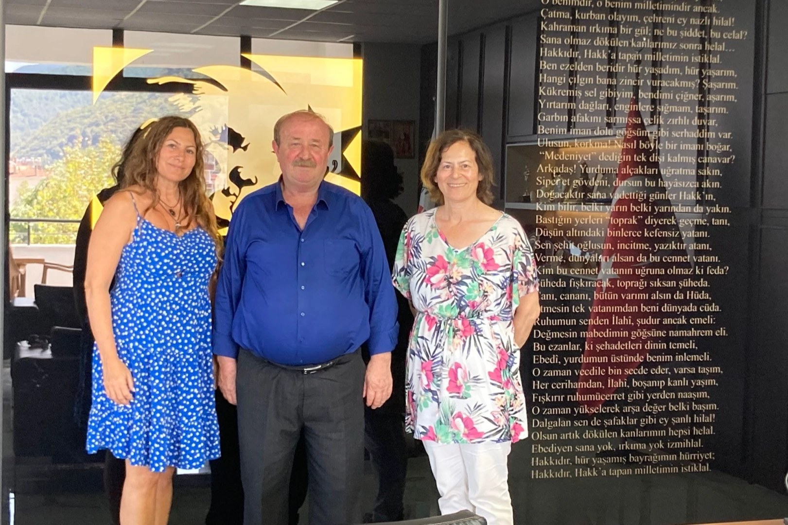 Yalova Esenköy Belediyesi Yeni Hizmet Binası’nın hizmete başlamasıyla birlikte Esenköy Belediye Başkanı Mehmet Temel ziyaretçilerini makamında ağırlamayı sürdürüyor. Başkan Temel’e, Yeni Belediye Hizmet Binası’nda belde halkından Hidayet Özek ve Ayşegül Yıldırım hayırlı olsun ziyaretinde bulundular. Bir araya gelinen buluşmada çeşitli konulardan konuşuldu. Temel, bu nazik ziyaretlerinden dolayı Özek ve Yıldırım’a teşekkür etti.